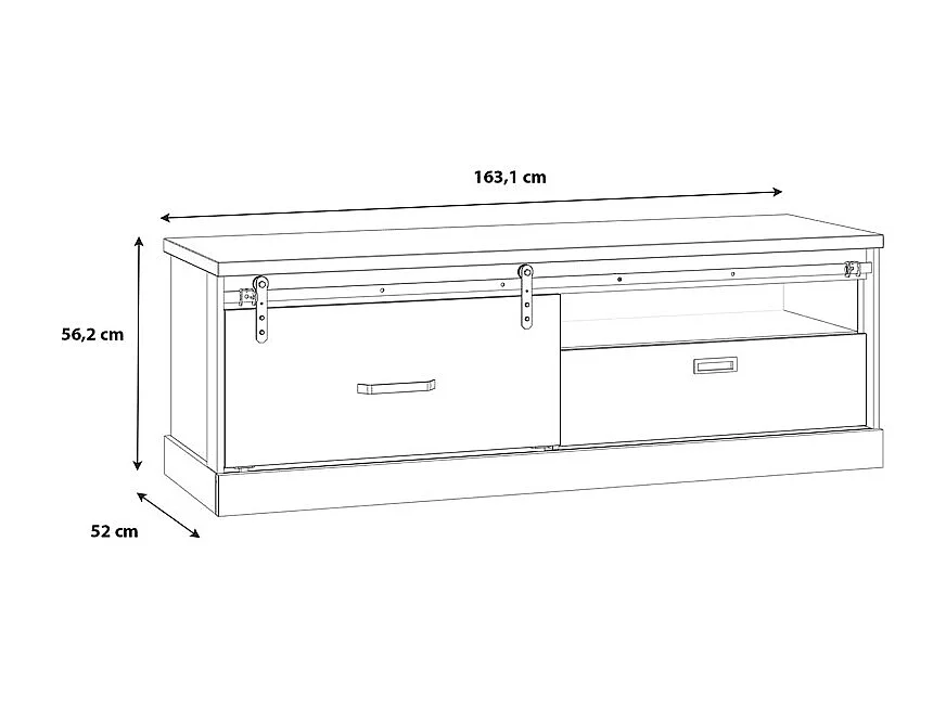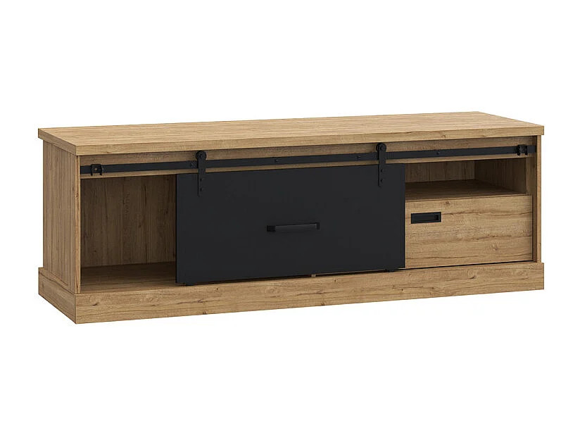 Meuble TV 1 tiroir 1 porte coulissante décor chêne et noir mat - FARM