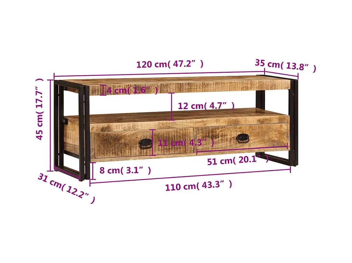 Meuble TV 120x35x45 cm Bois solide de manguier
