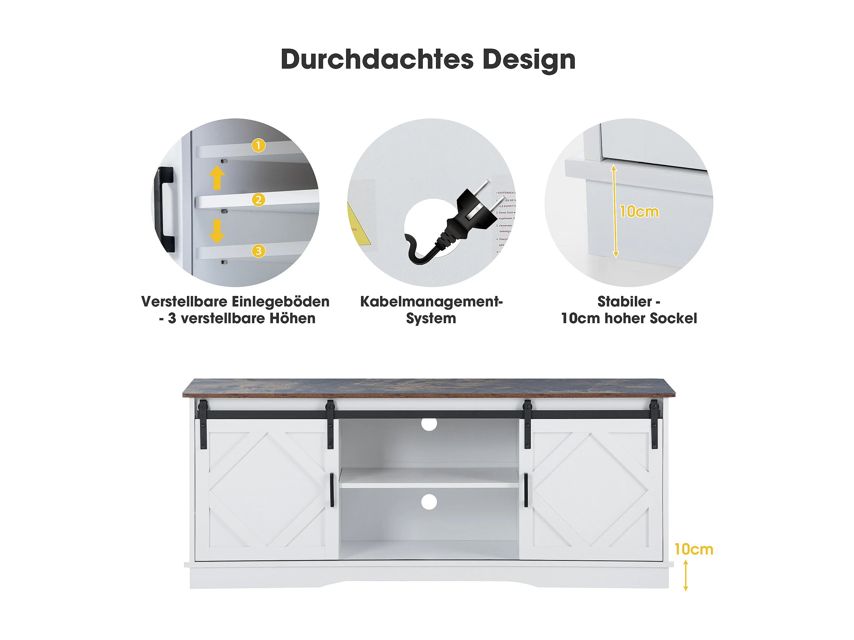 Meuble TV blanc avec 2 portes coulissantes et étagère de rangement - 150x40x60 cm