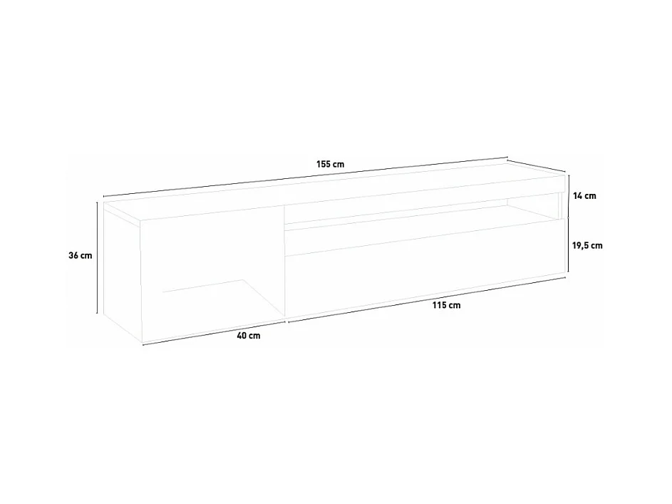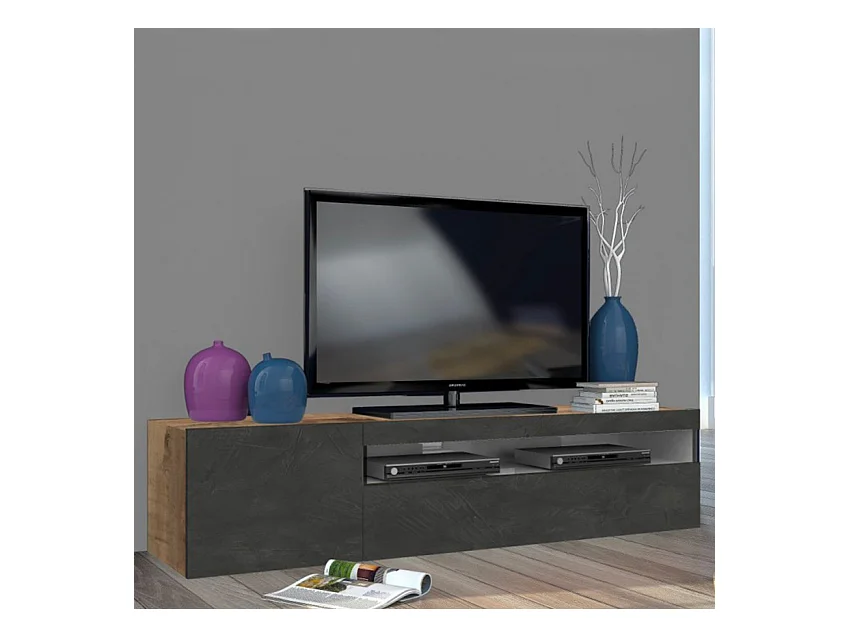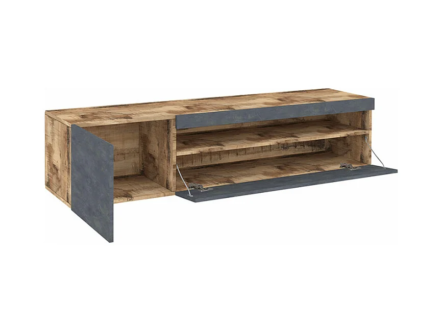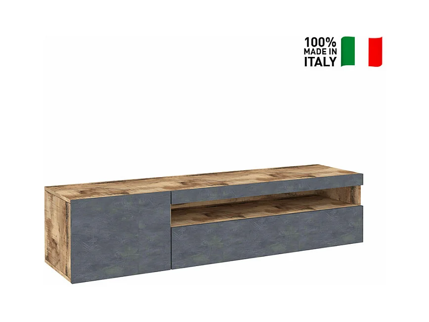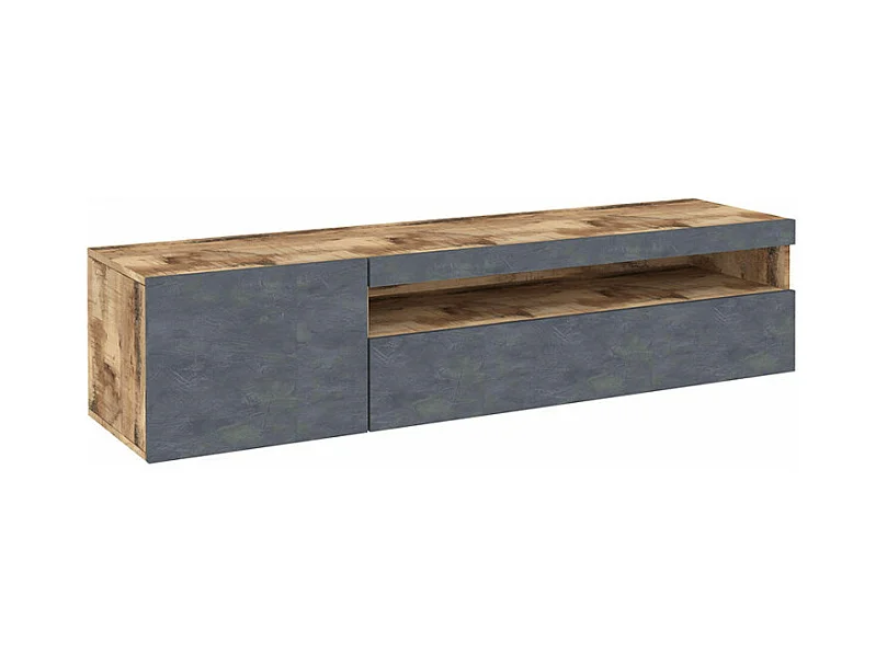 Meuble TV 155cm Industriel avec armoire et tiroir rabattable Steel