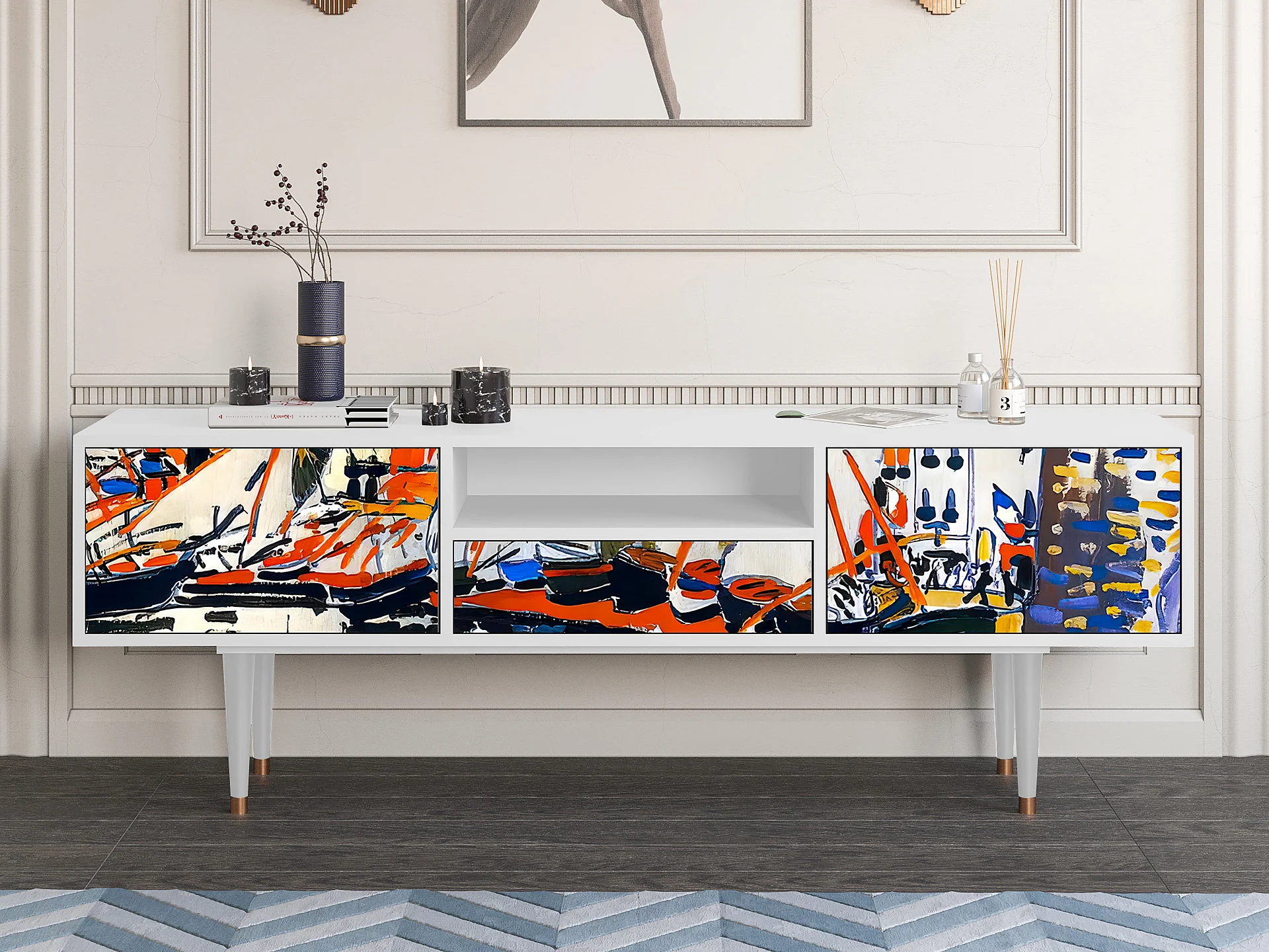 Meuble TV - 170х59х41 cm - T6 - Le Séchage des voiles , Blanc