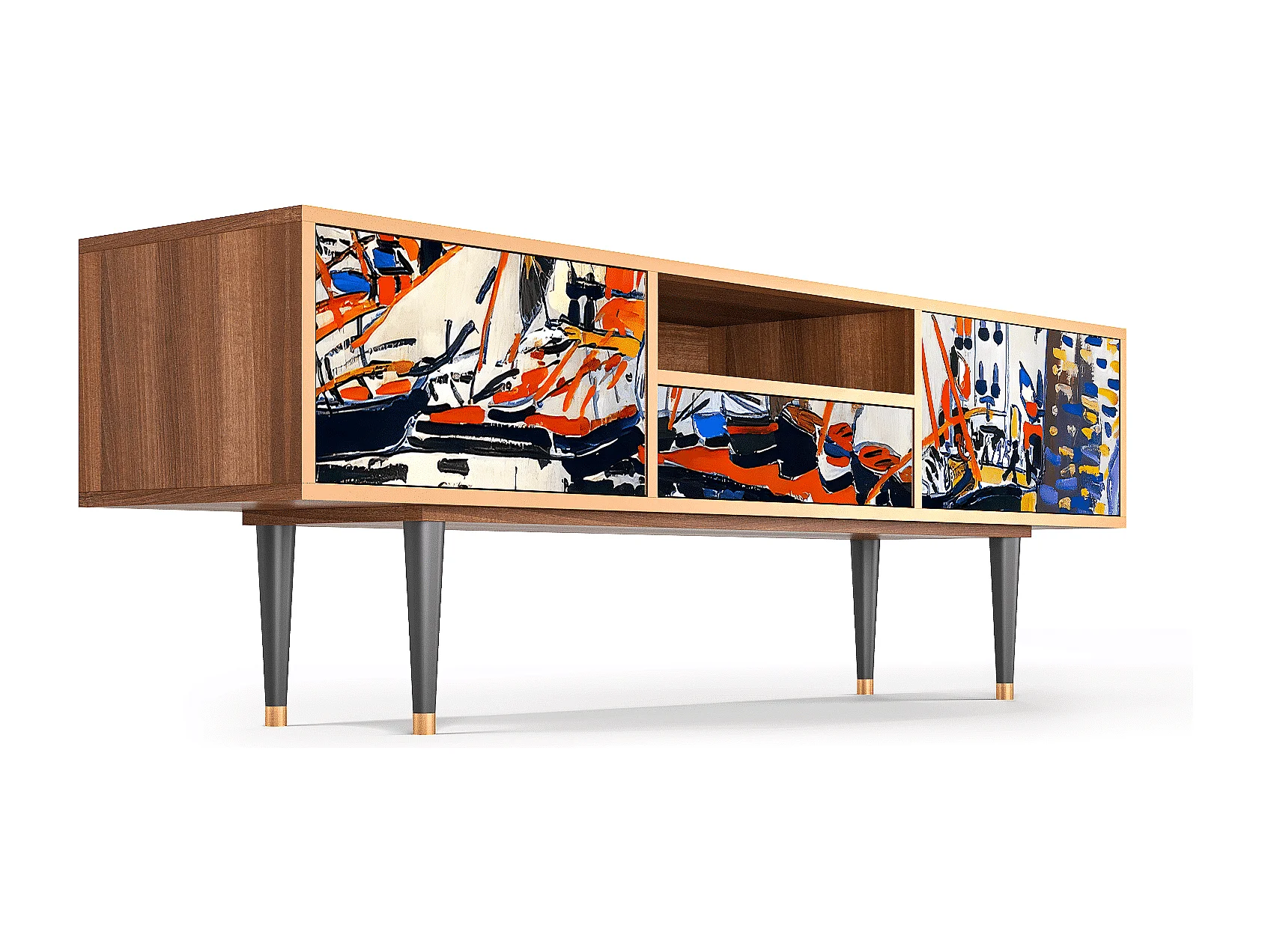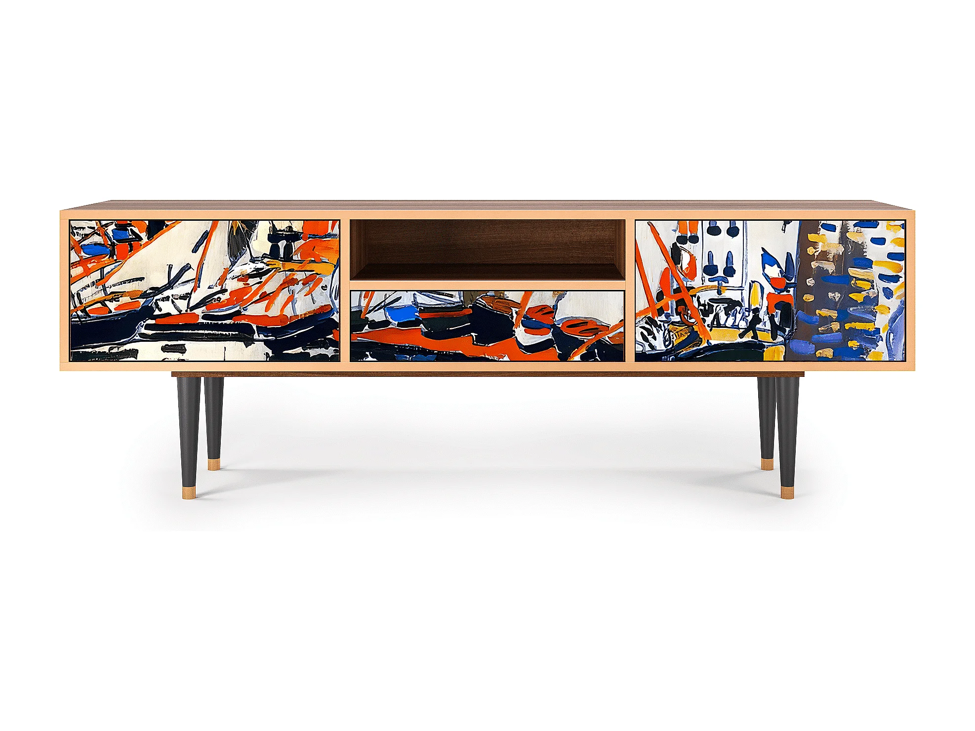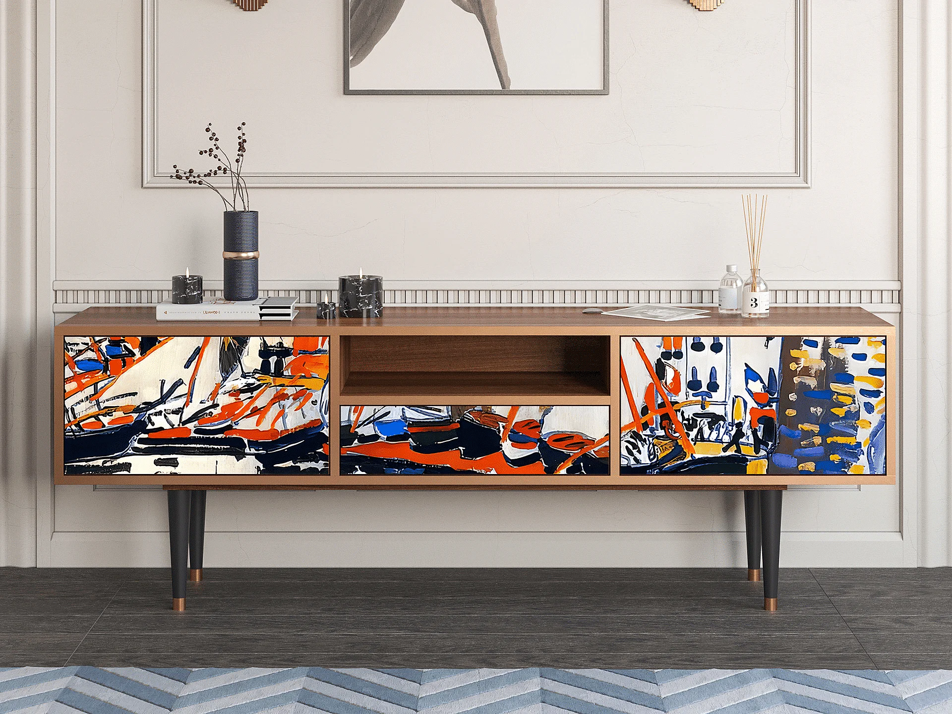 Meuble TV - 170х59х41 cm - T6 - Le Séchage des voiles , Noyer