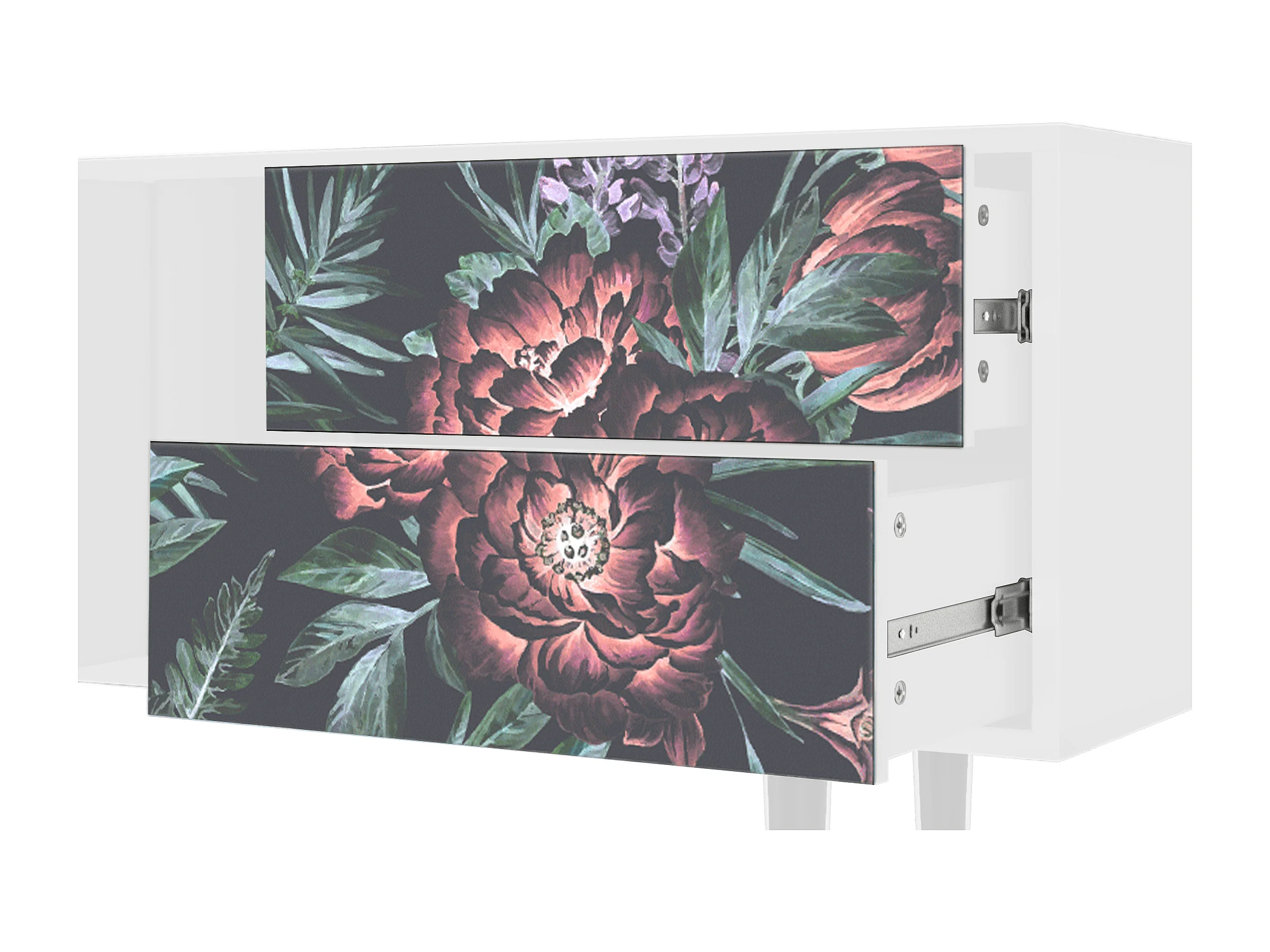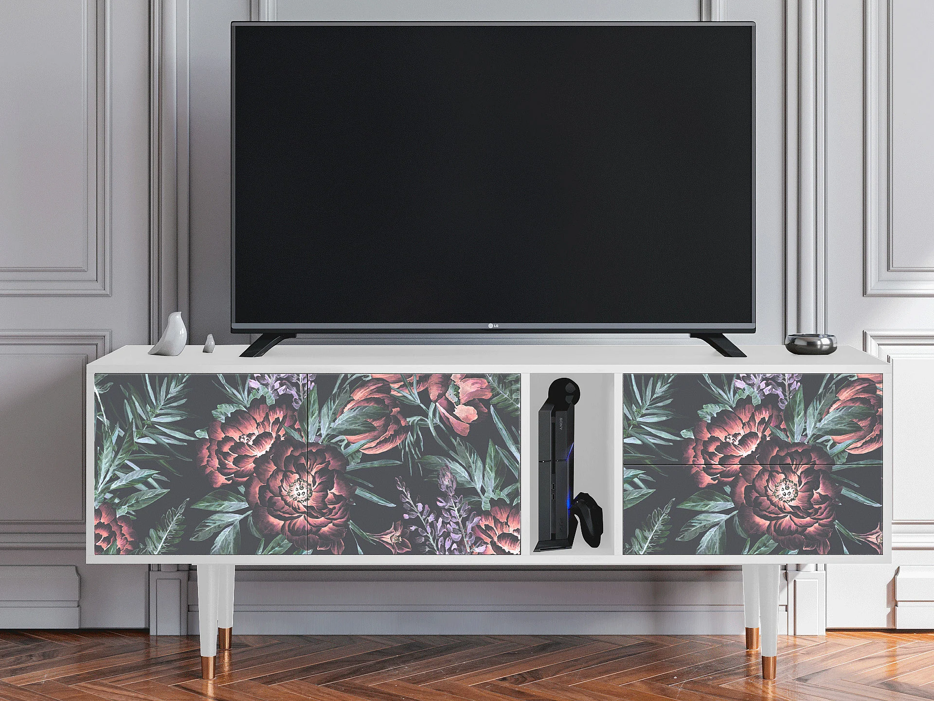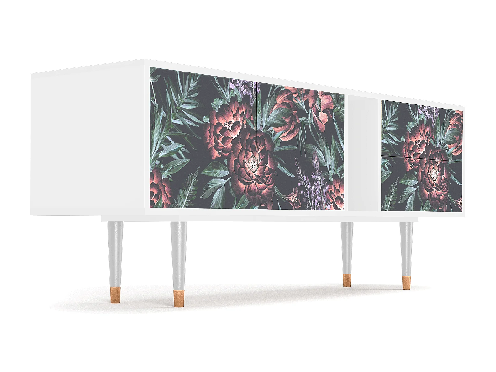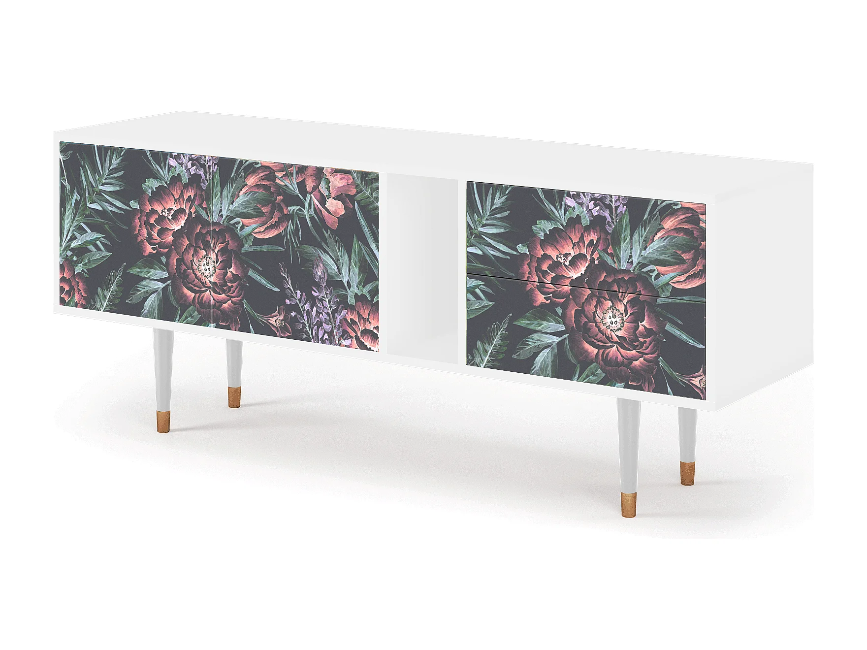 Meuble TV - 170х69х48 cm - T1 - Dark Peonies, Blanc