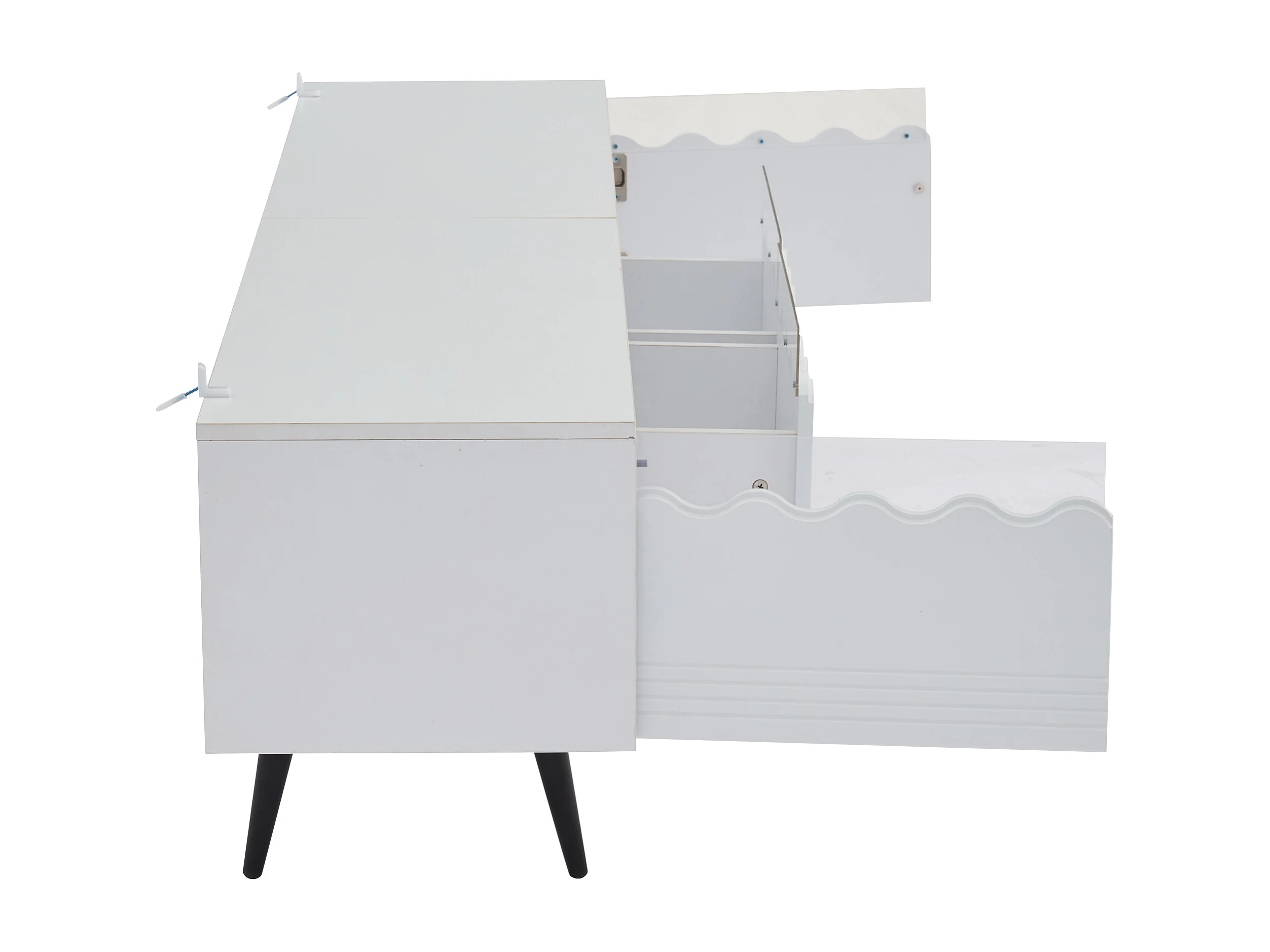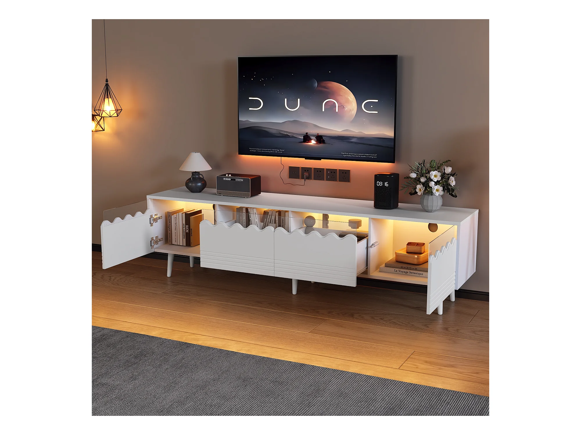 Meuble TV - 176x38x45cm Lowboard avec 6 Pieds de Support - avec 2 tiroirs et 2 armoires - Blanc