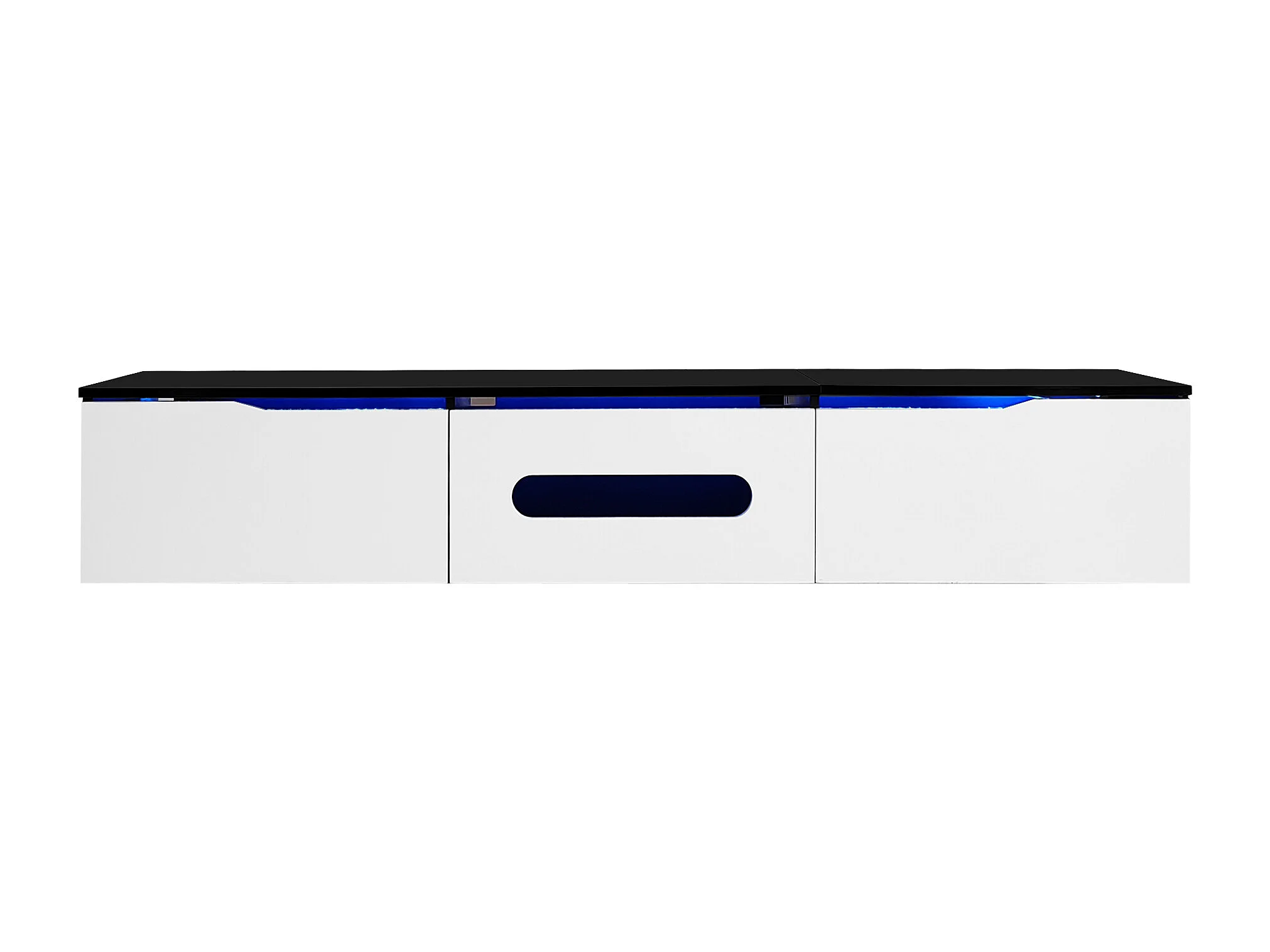 Meuble TV 180 cm avec 3 portes blanches et éclairage LED 16 couleurs - noir