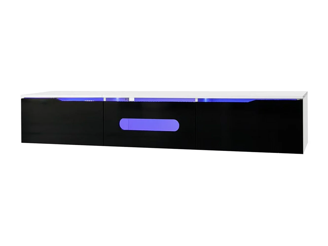 Meuble TV 180 cm avec 3 portes noires et éclairage LED 16 couleurs - blanc