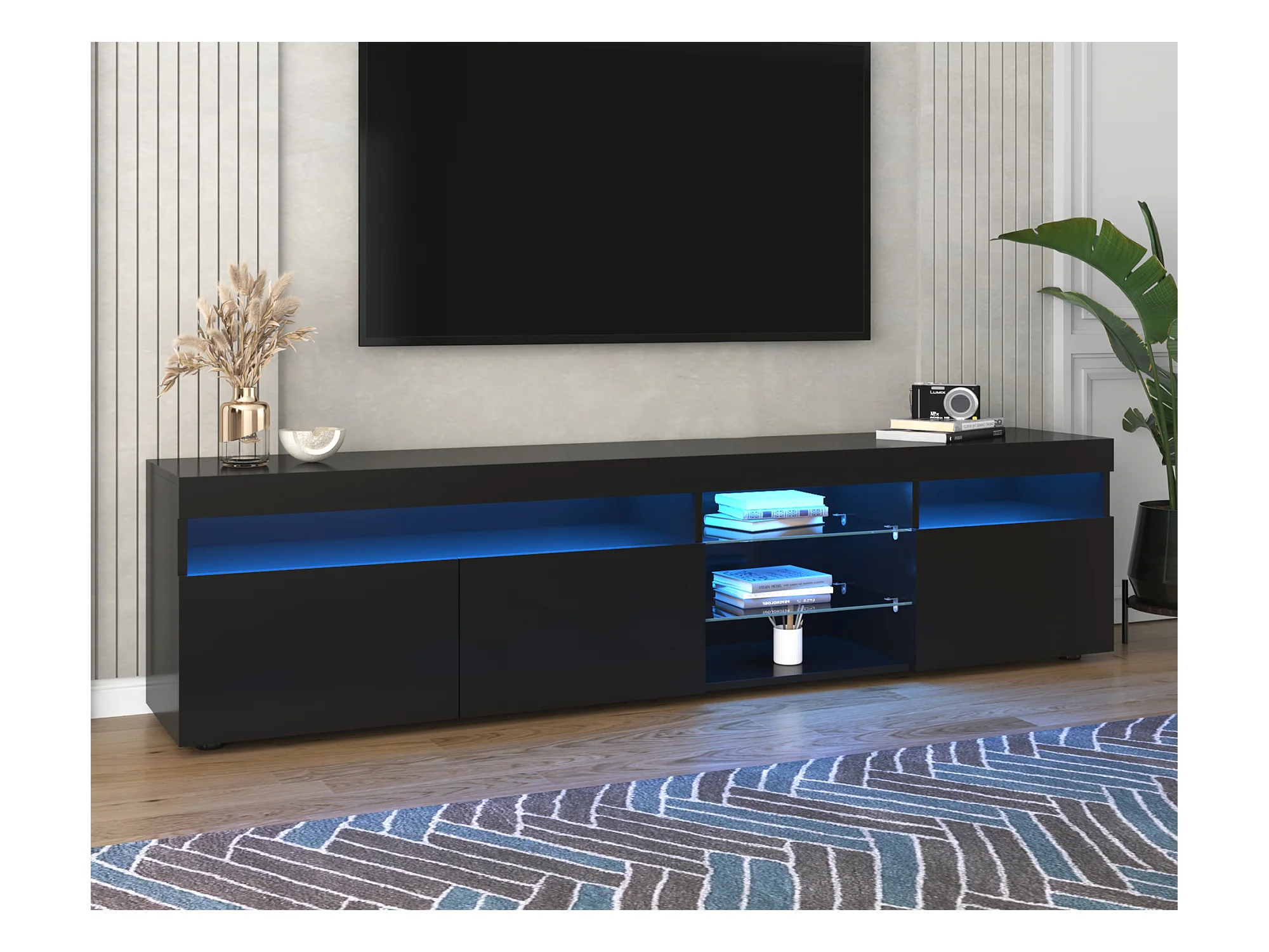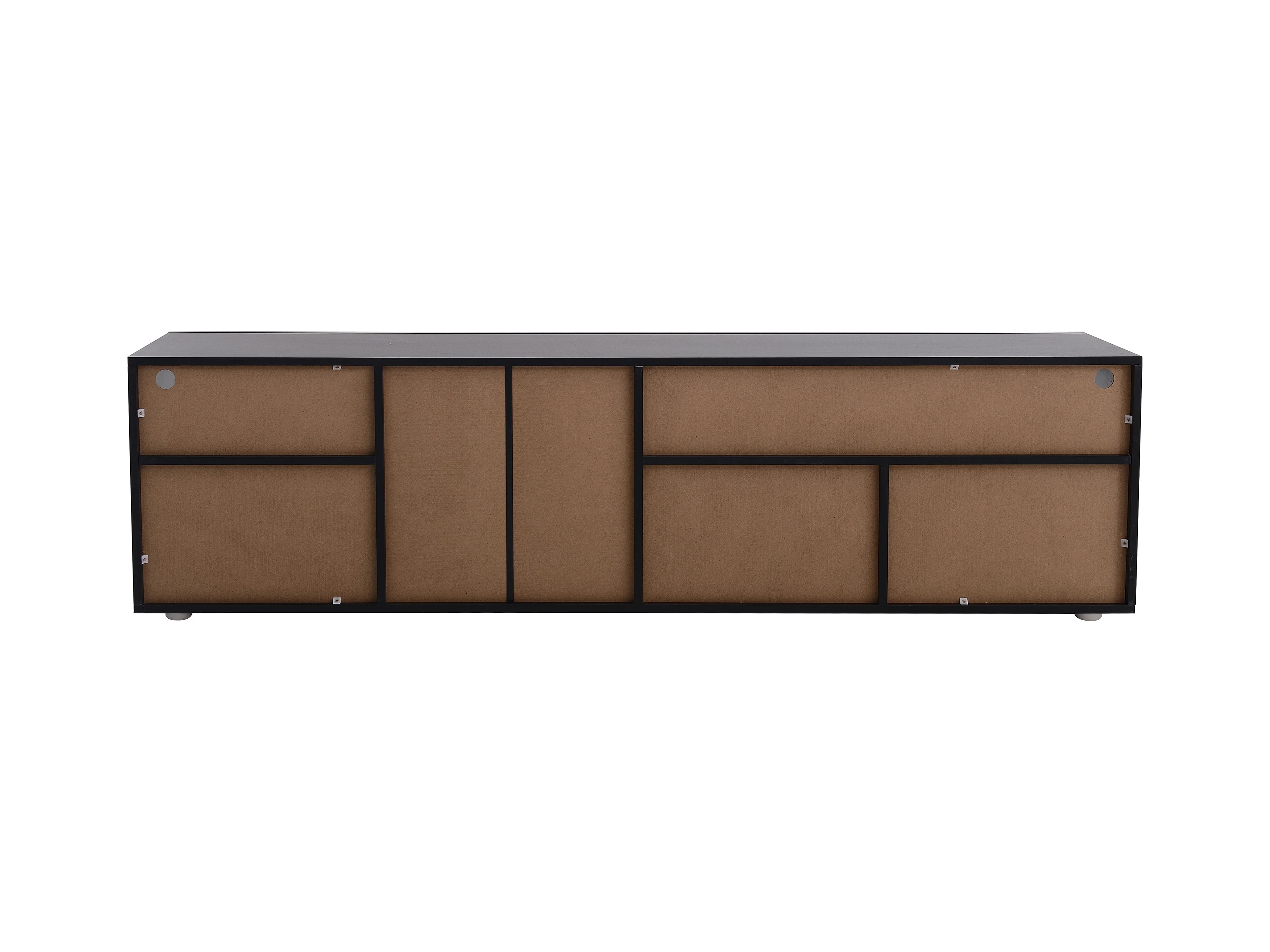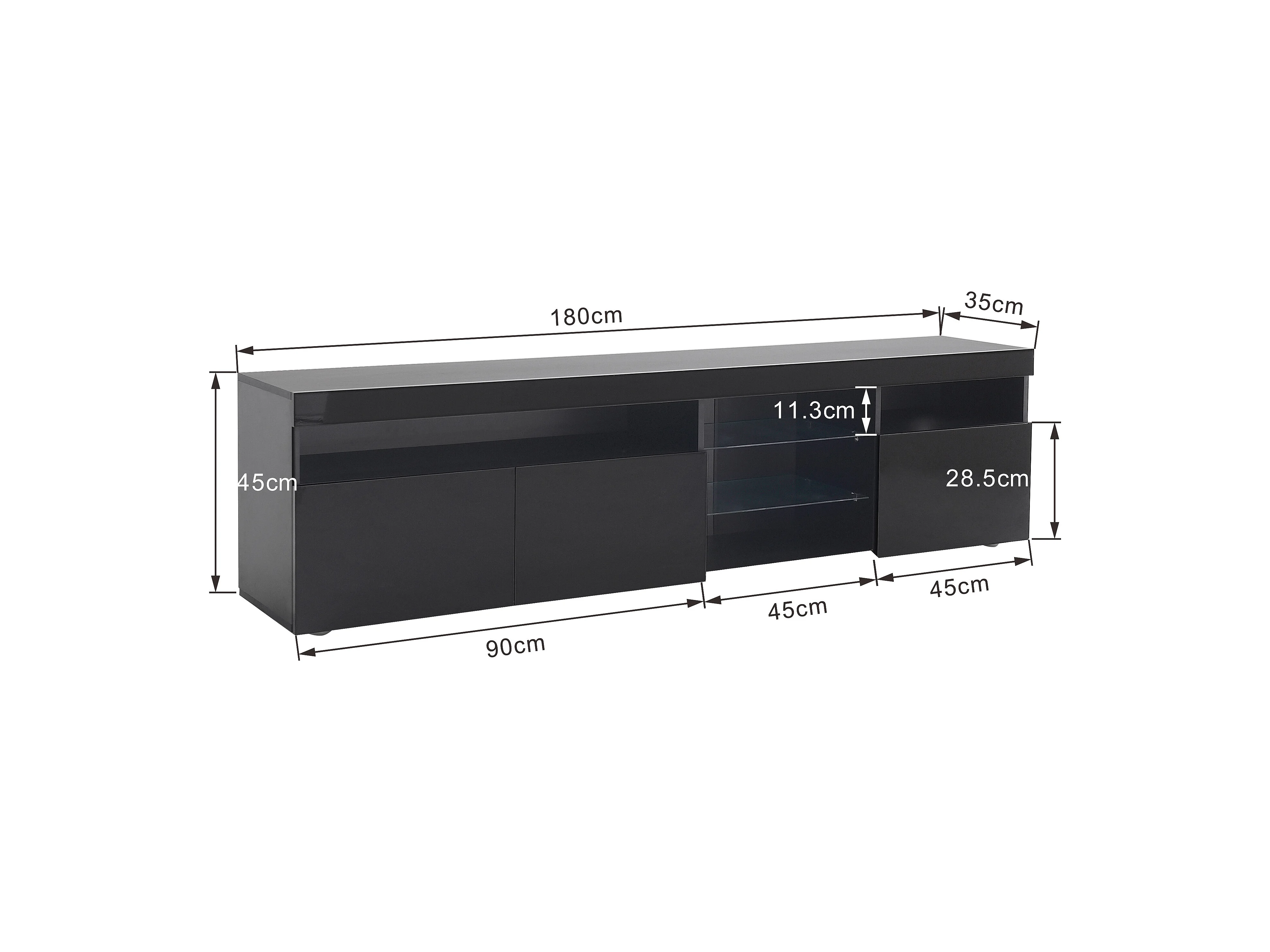 Meuble TV moderne 180cm avec LED - 3 portes & 5 compartiments ouverts - Noir