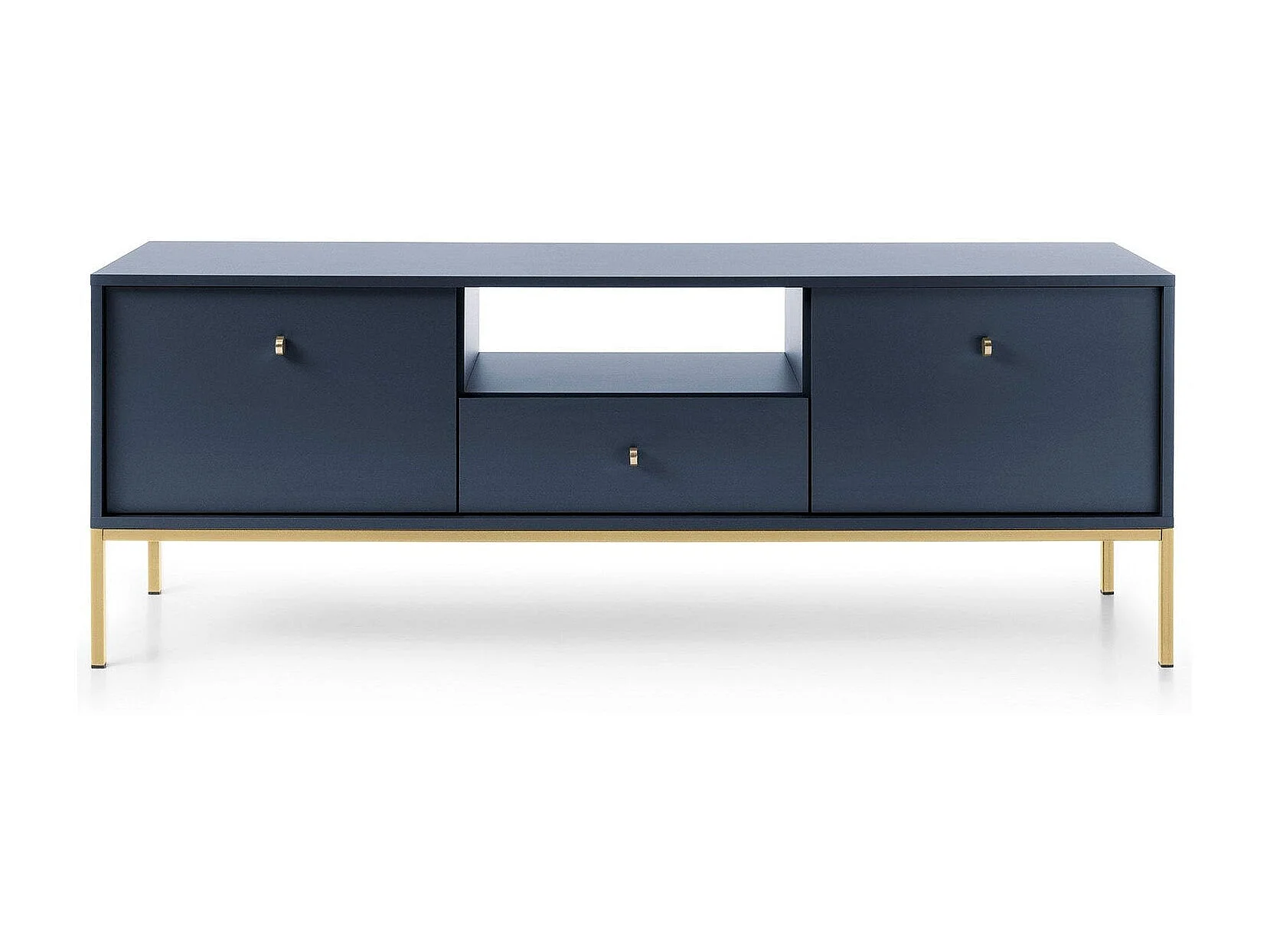 Meuble TV 2 portes, 1 tiroir avec pieds en métal doré, 154x56 cm