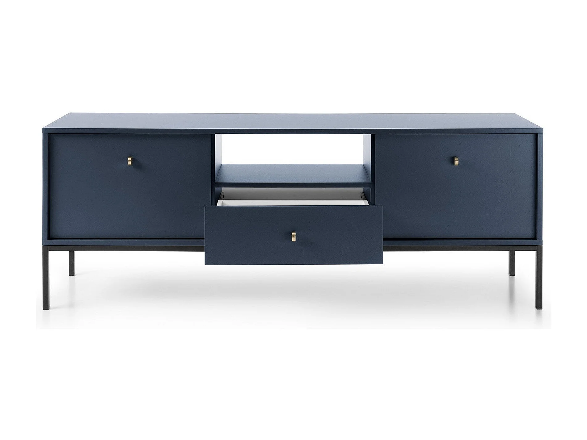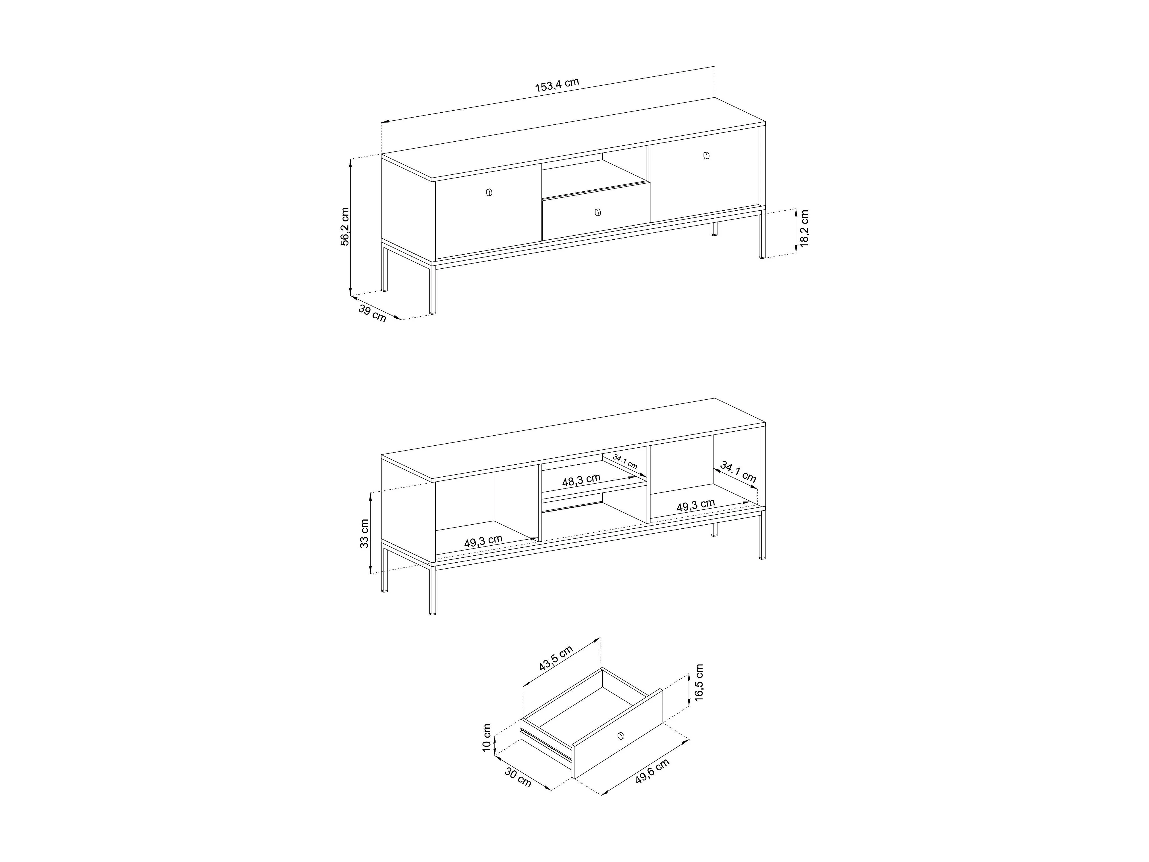 Meuble TV 2 portes, 1 tiroir avec pieds en métal noir, 154x56 cm