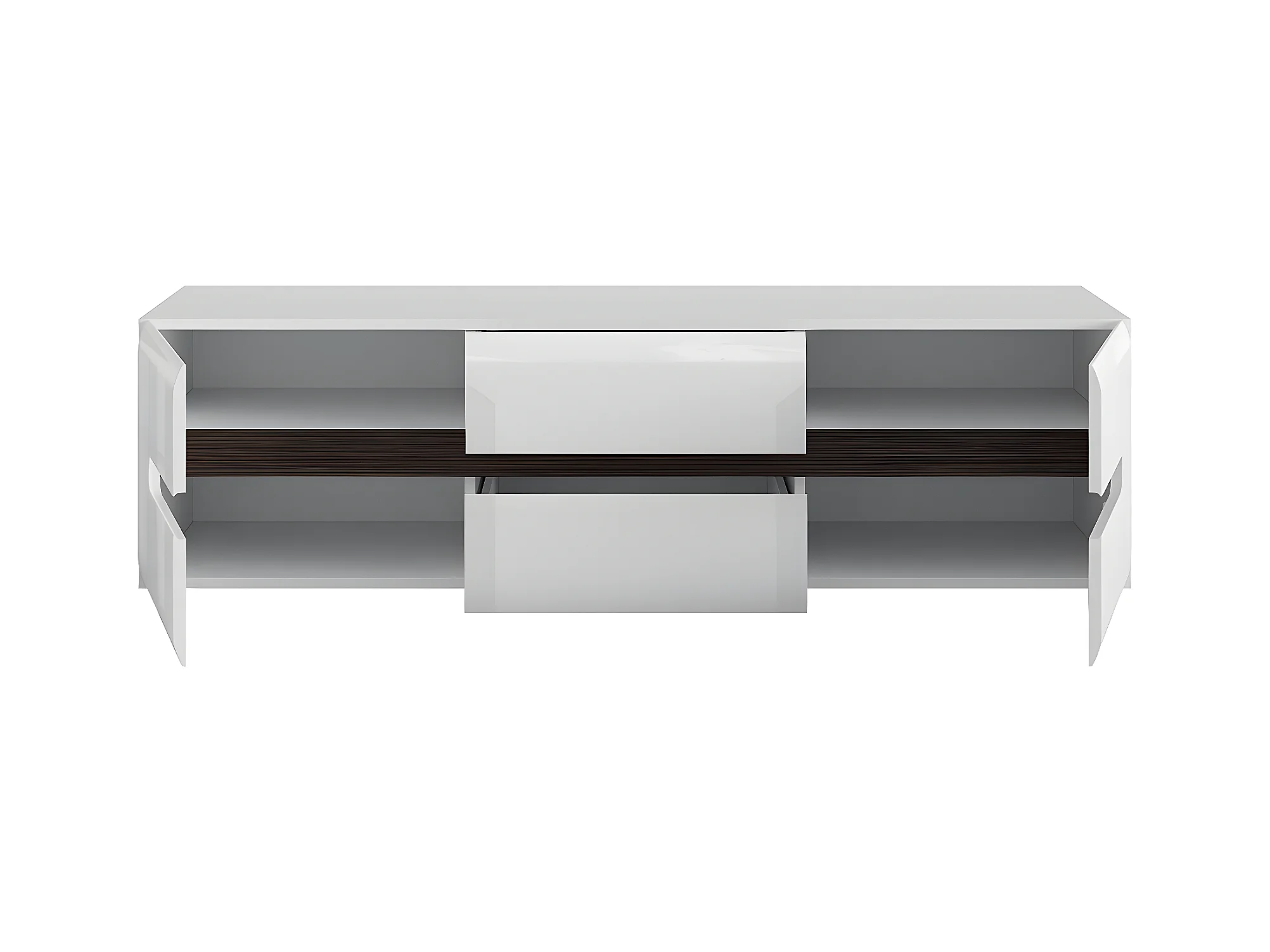 Meuble TV 2 portes 2 tiroirs 150 cm Darrel Blanc laqué et Bois