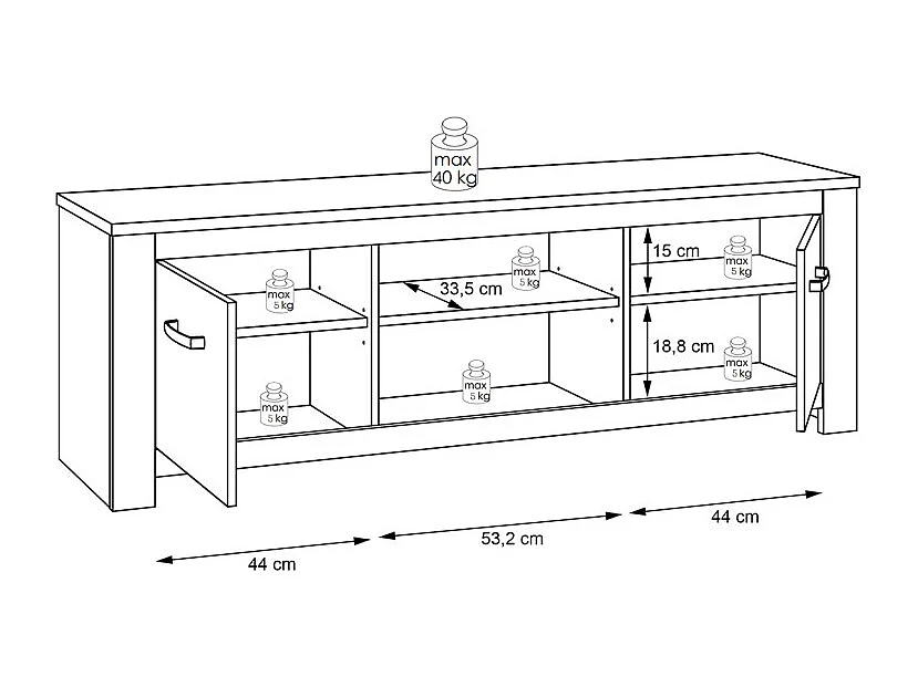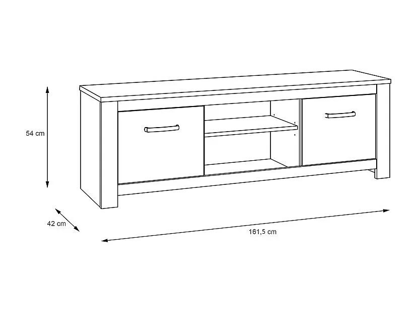 Meuble TV 2 portes blanc mat décor bois clair poignées noires - LEANE