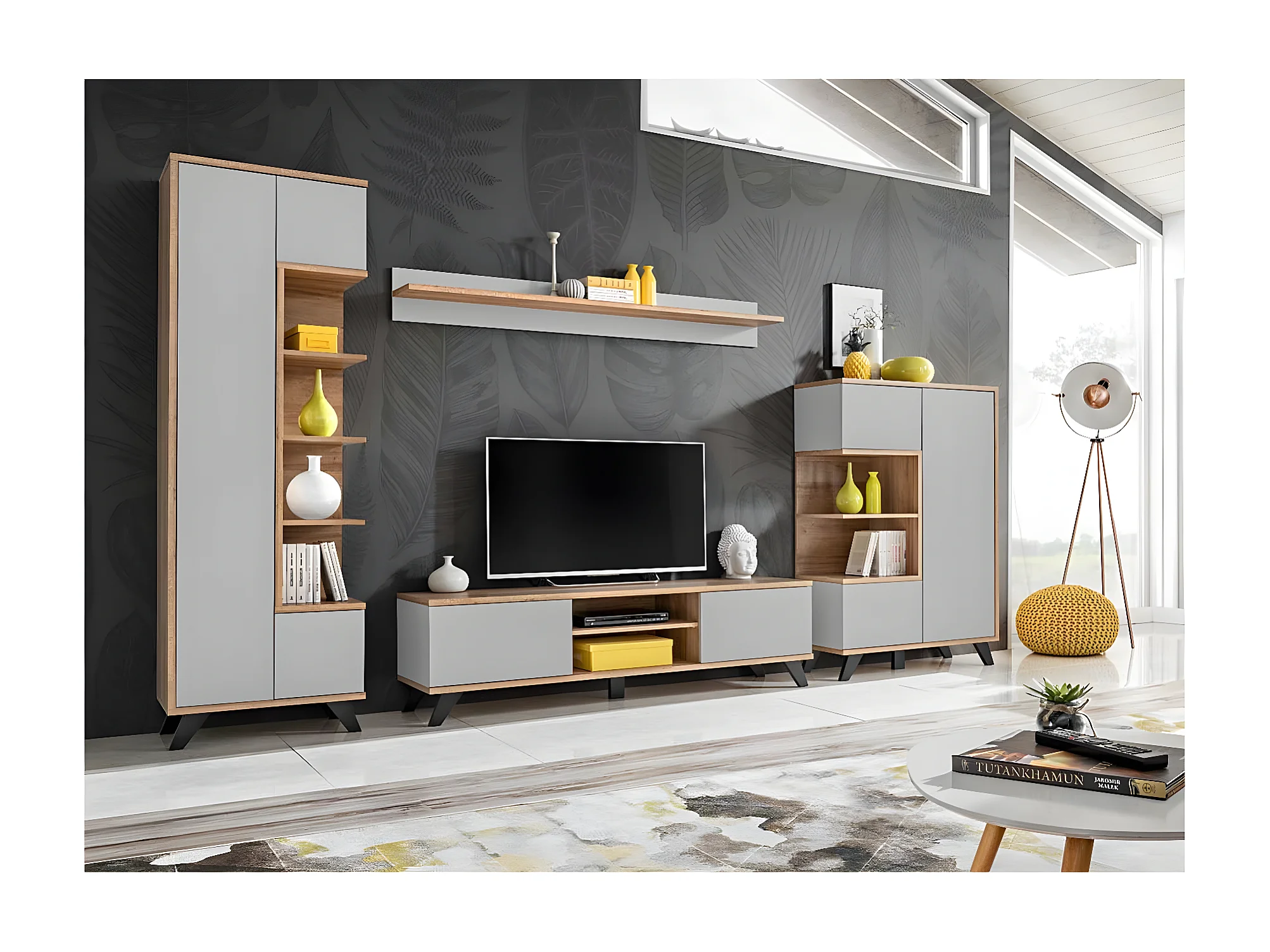 Meuble TV 2 Portes "Bogota" 160cm Gris & Naturel