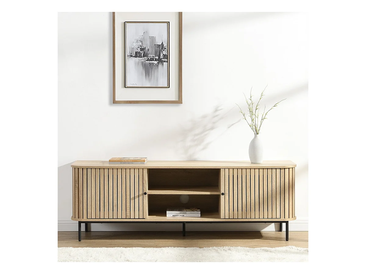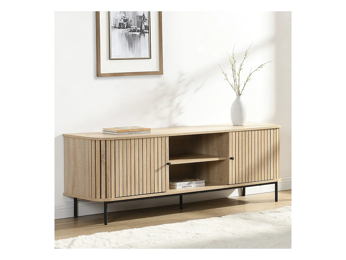 Meuble TV 2 portes rainurées couleur chêne L160xH55 cm - Solna