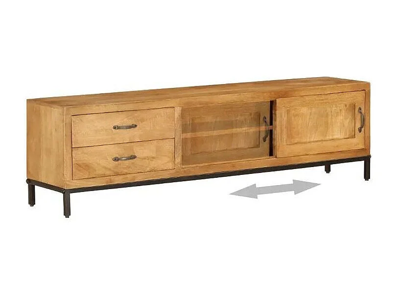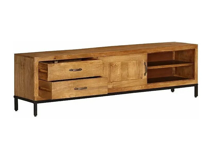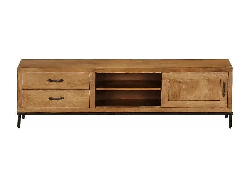 Meuble TV 2 tiroirs 1 porte manguier massif et métal noir Sopra