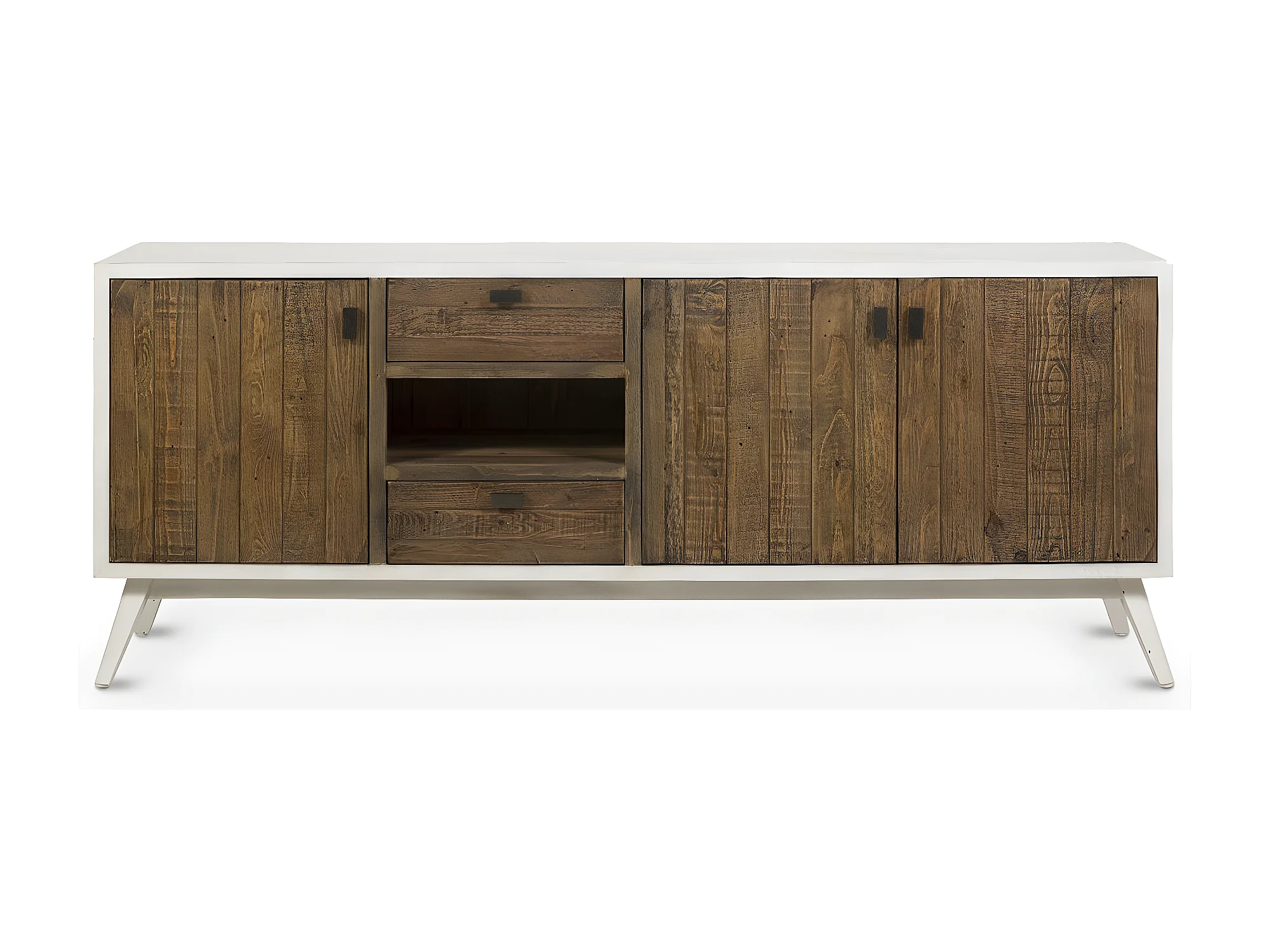 Meuble tv 2 tiroirs Bois Blanc - Nastasie Décoration d'Autrefois