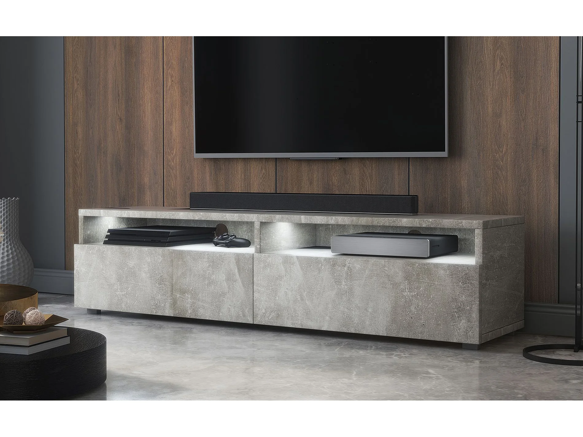 Meuble TV - 2 tiroirs - aspect béton LED - 140 cm - REDNAW
