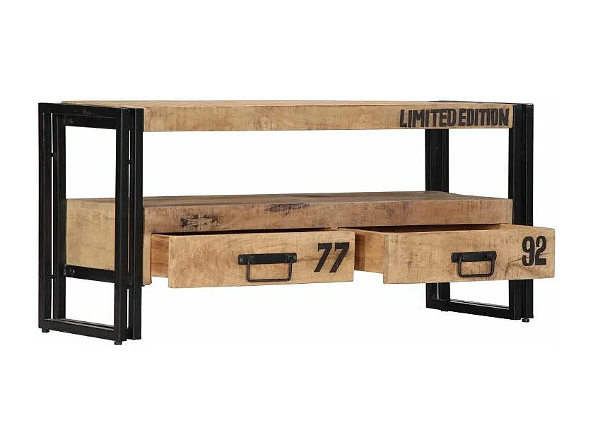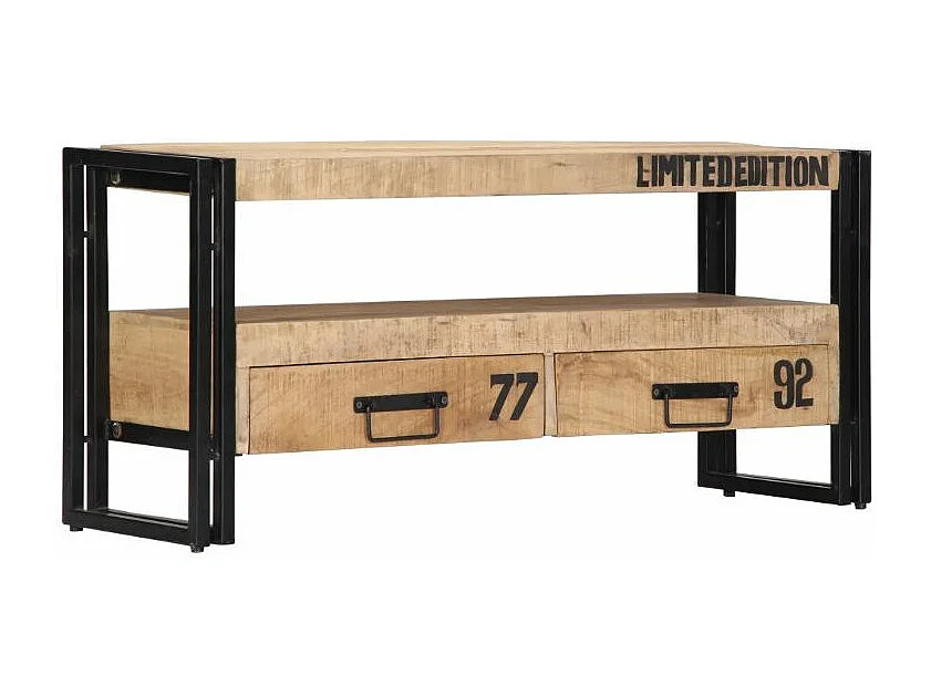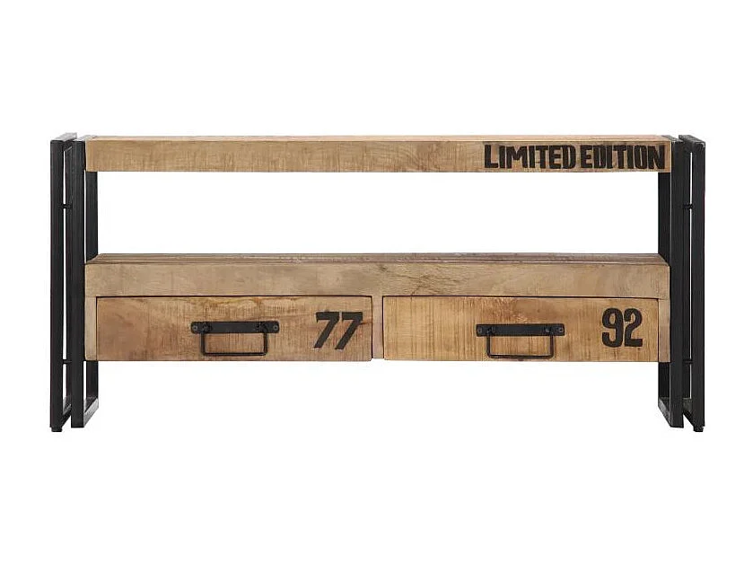 Meuble TV 2 tiroirs manguier massif clair et métal noir Grey