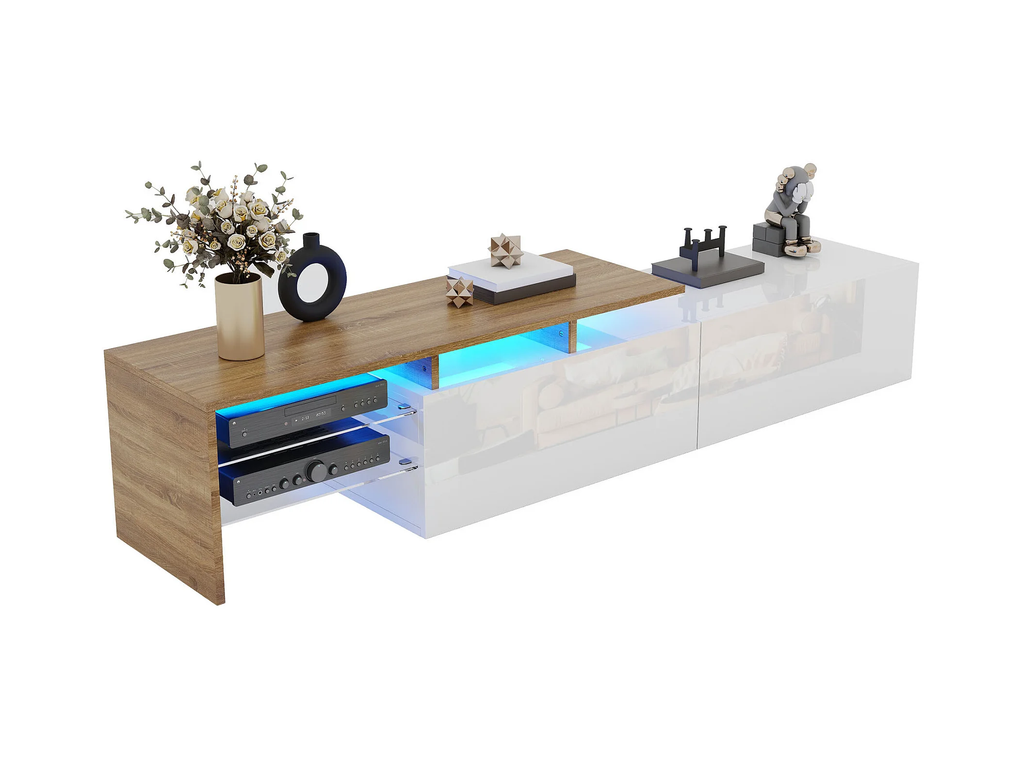 Meuble TV 2 tiroirs - Meuble TV avec éclairage LED et compartiments de rangement - blanc