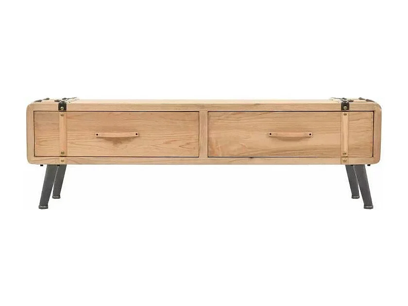 Meuble TV 2 tiroirs pin massif clair et pieds métal noir Stylie