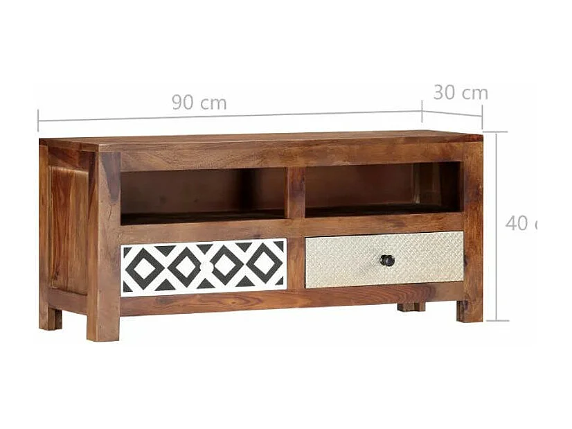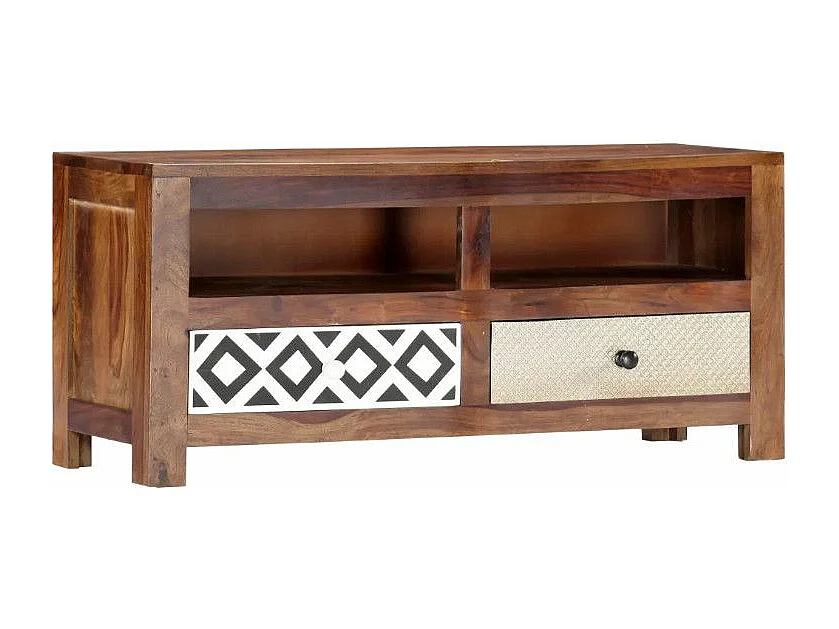 Meuble TV 2 tiroirs sesham massif foncé Balima