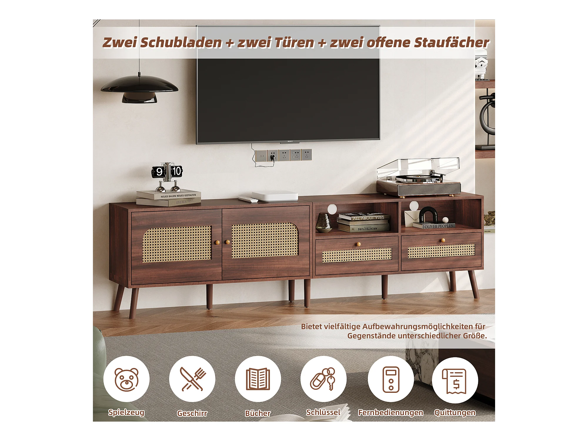 Meuble TV - 200 x 37 x 49.5 cm - pour téléviseurs 80 pouces + 2 portes + 2 tiroirs - aggloméré - marron