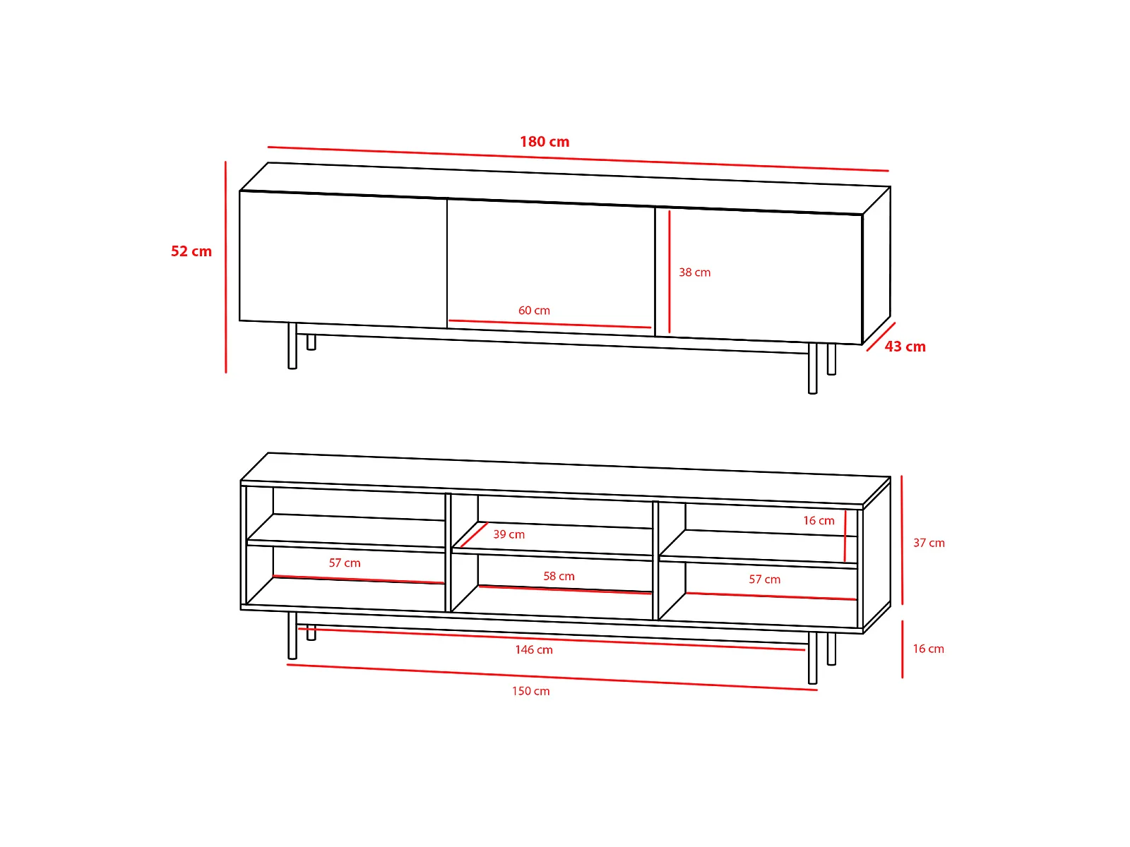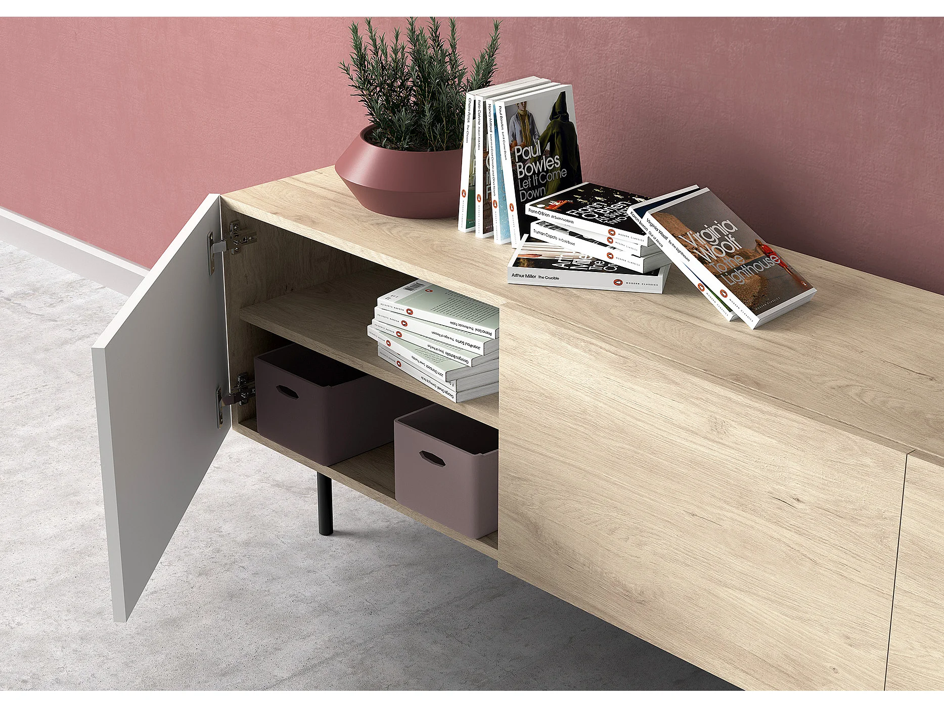 Meuble TV 3 portes - H52cm x L180cm x L43cm - chêne clair et blanc - Printed