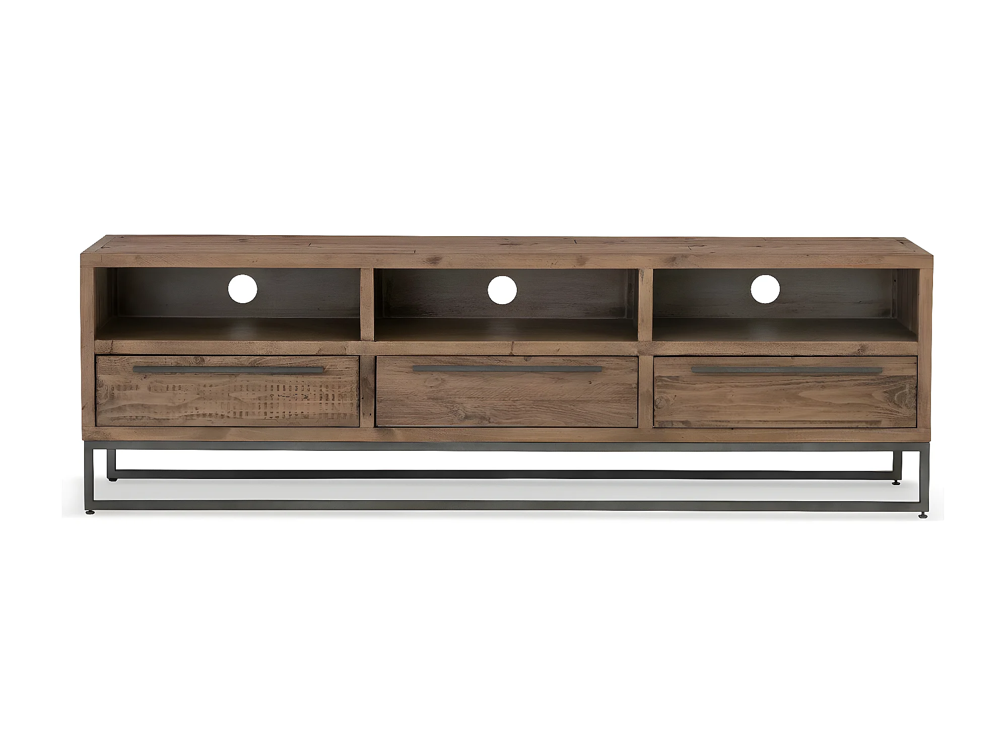 Meuble tv 3 tiroirs Bois-Métal Marron - Maglorine Décoration d'Autrefois