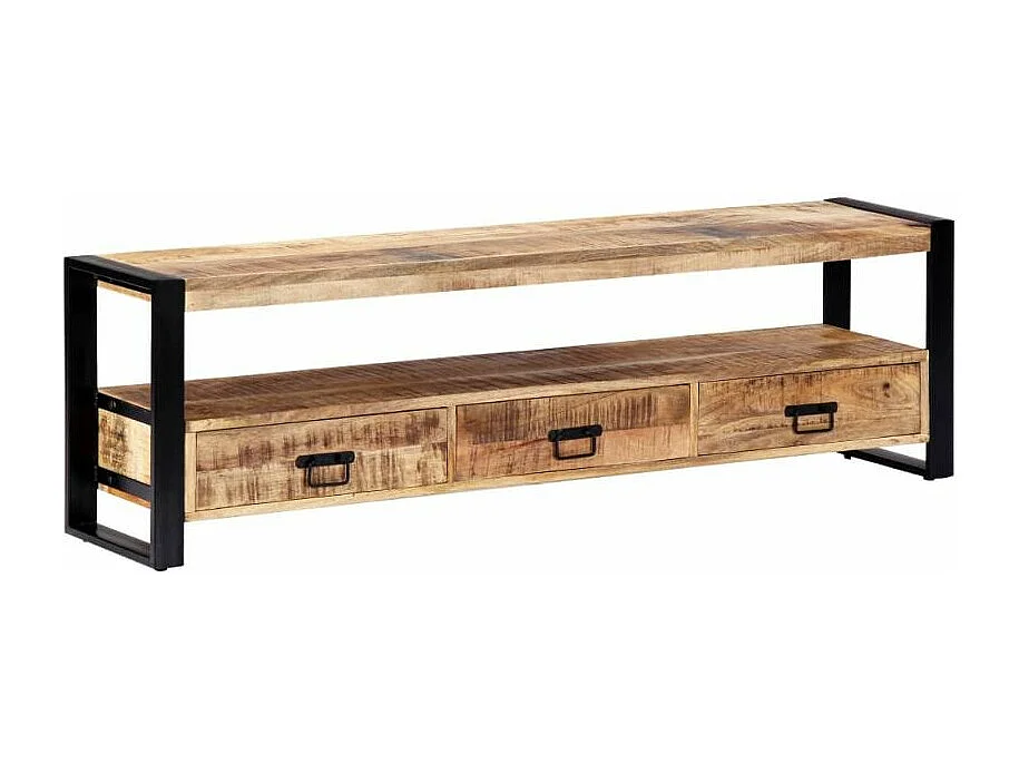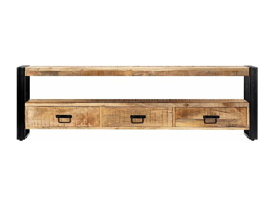 Meuble TV 3 tiroirs manguier massif clair et métal noir Maneci