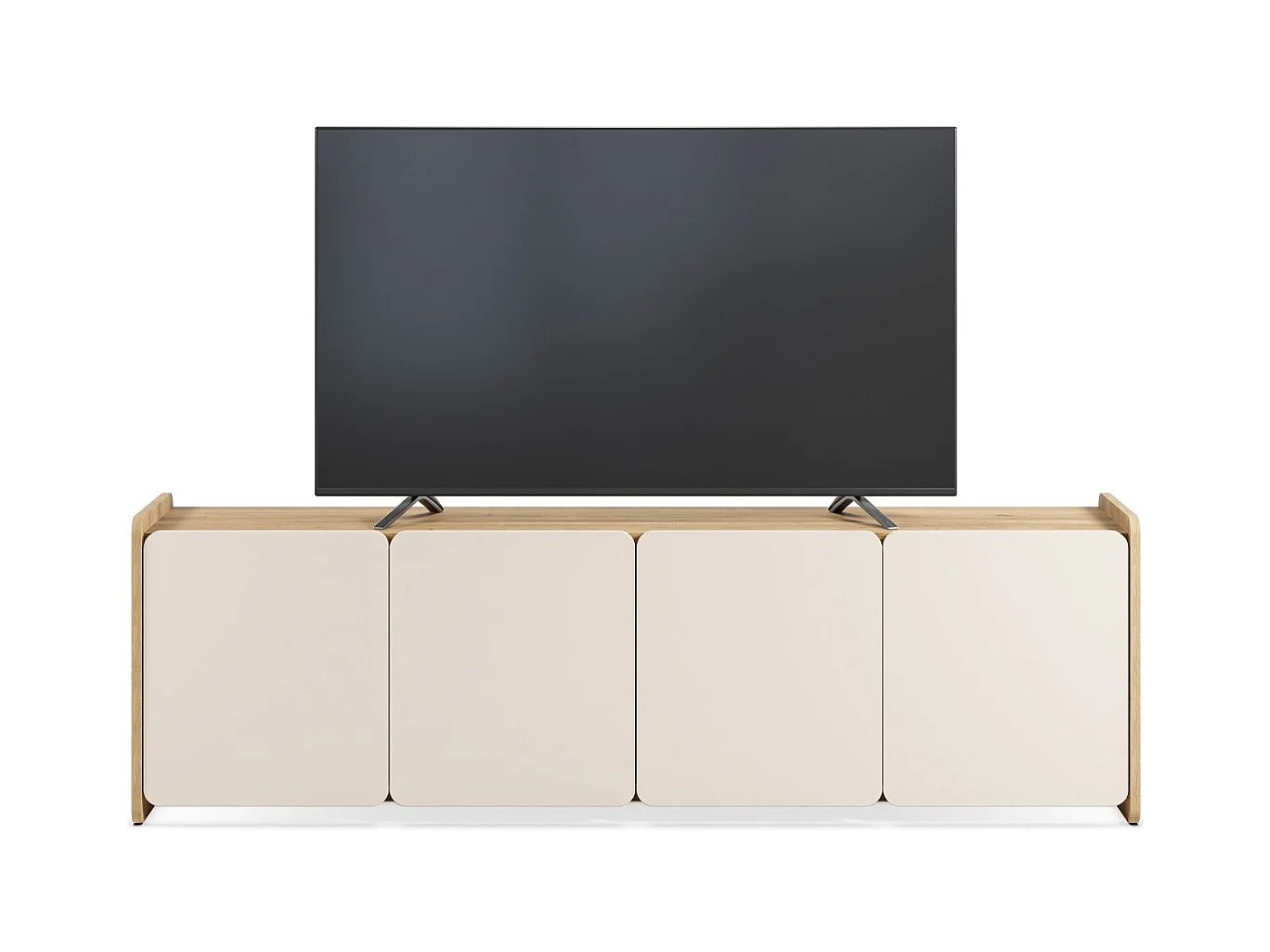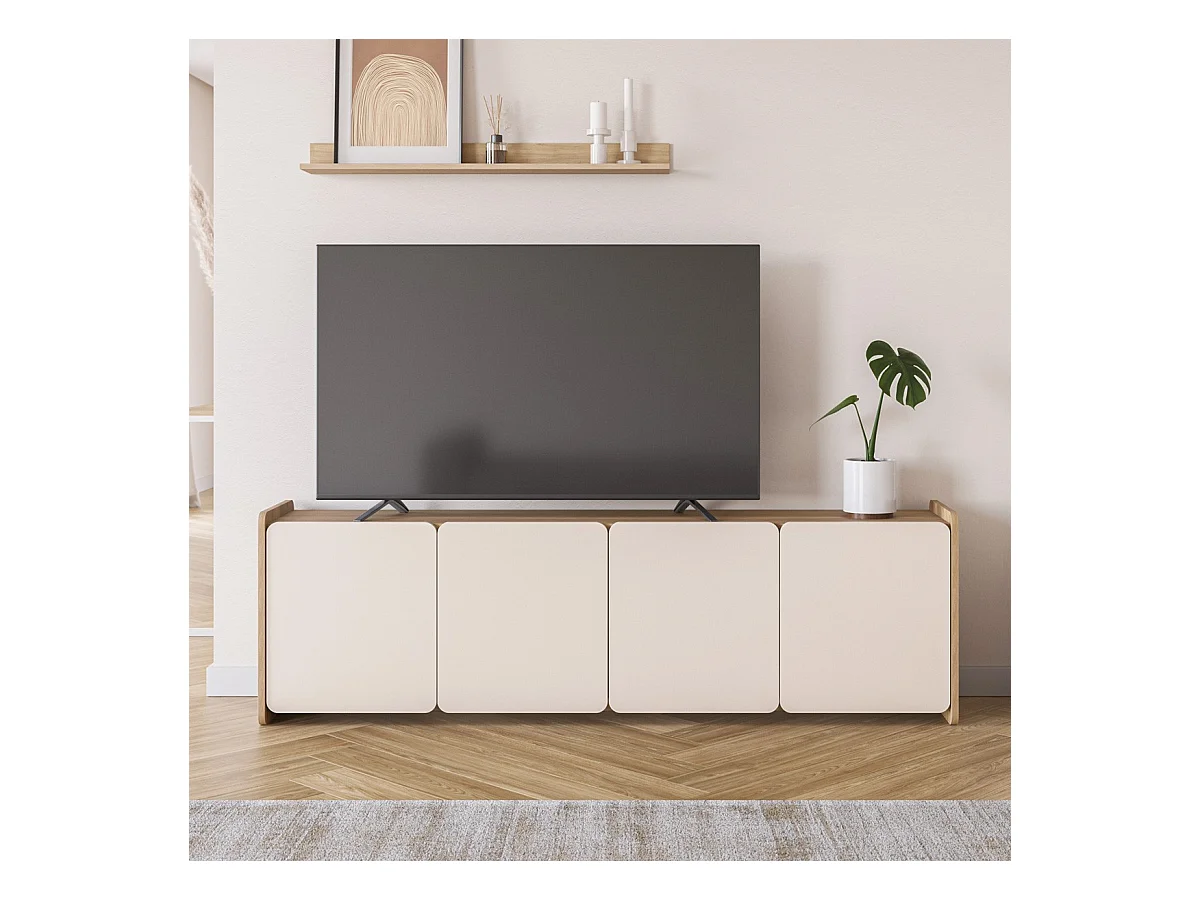 Meuble TV 4 portes beige et décor chêne 180 cm - Sami