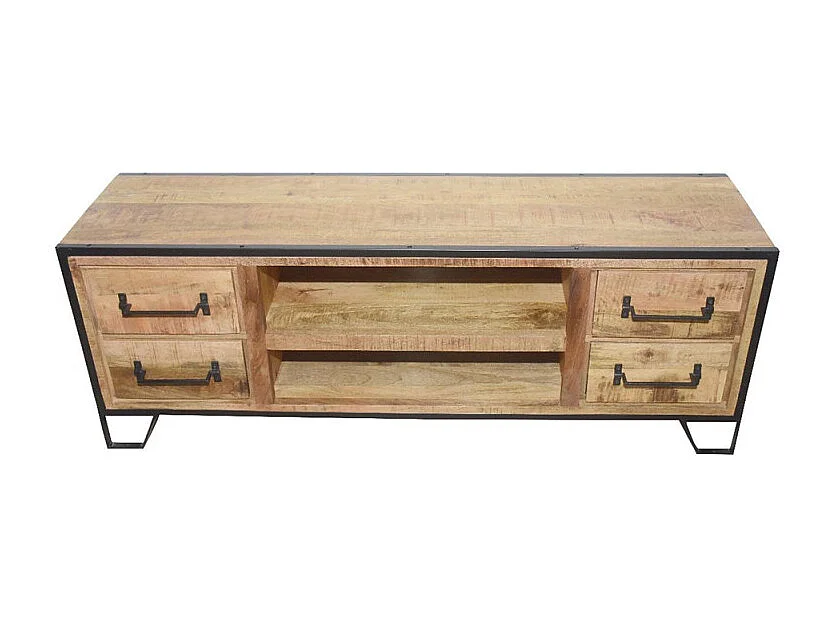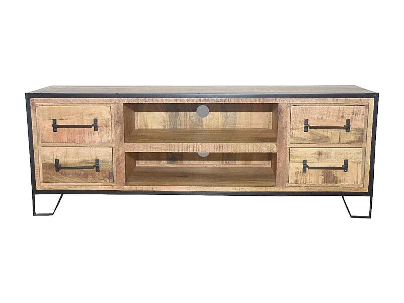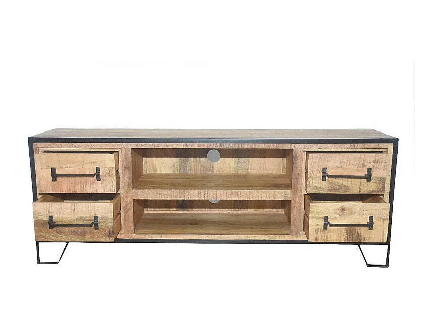 Meuble TV 4 tiroirs 2 niches Astana manguier et métal