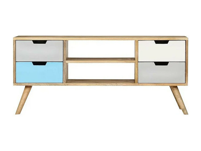 Meuble TV 4 tiroirs manguier massif clair Amagn 110cm