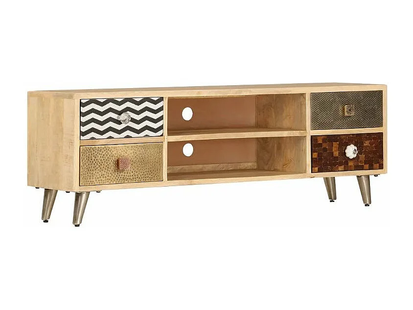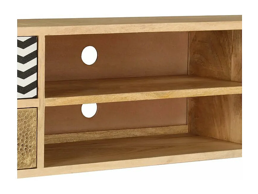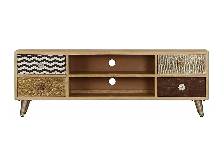 Meuble TV 4 tiroirs manguier massif et métal doré Pictou