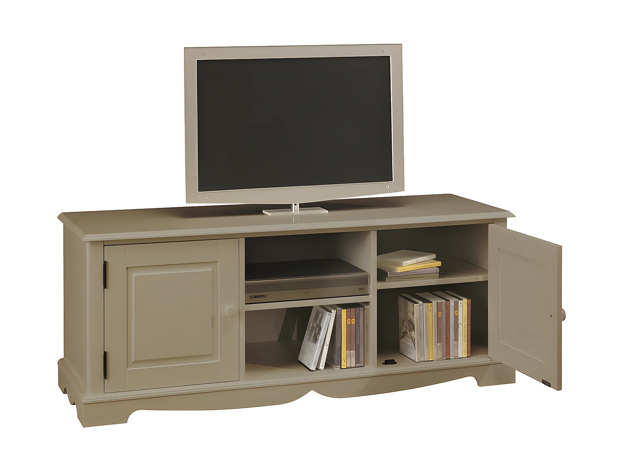 Meuble TV 60 Pouces Style Anglais Taupe 2 Portes 2 Niches 142.4 x 55.5 x 46 cm