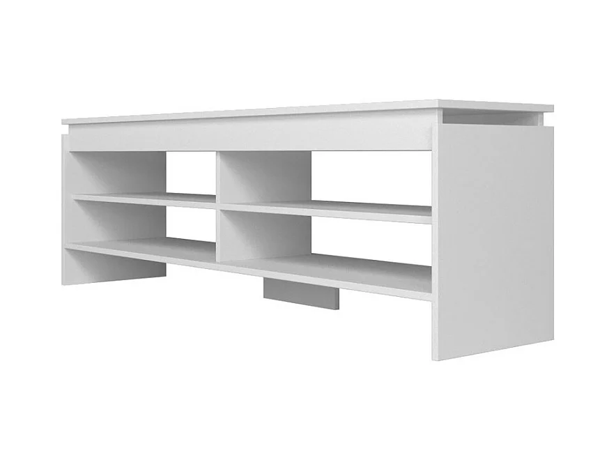 Meuble TV 50 Pouces 2 Abattants Blanc 6 Niches L 164 H 46.5 P 37.5 cm