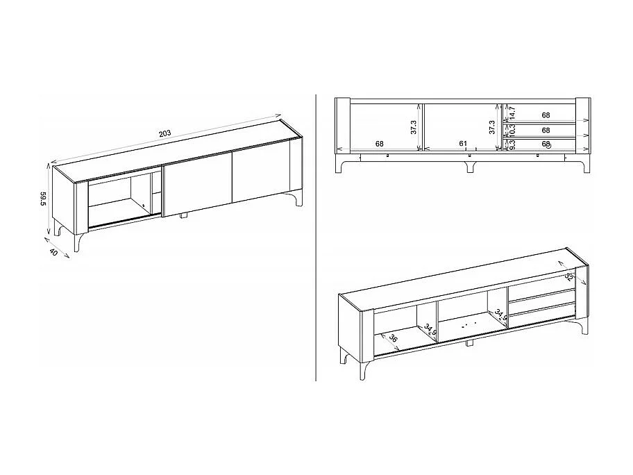 Meuble TV 72 Pouces Gris et Chêne 2 Portes Coulis. 5 Niches L 203 H 59.5 P 40 cm