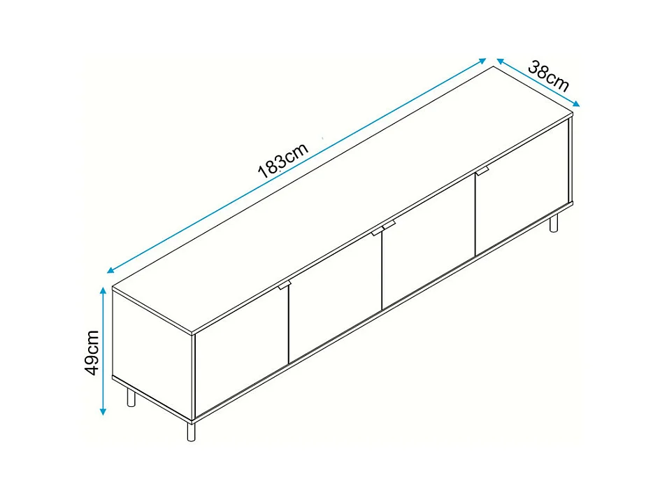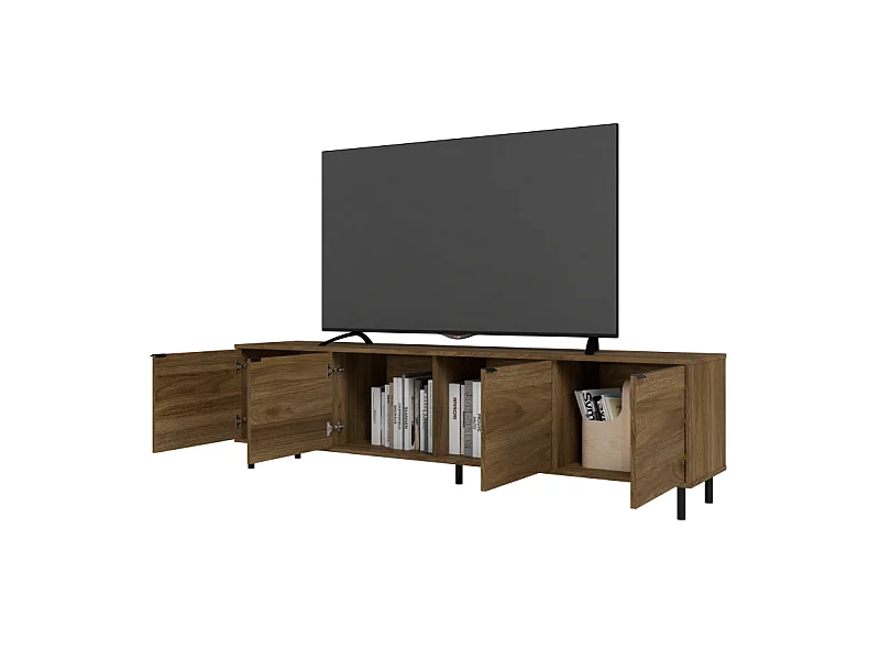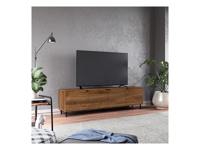 Meuble TV 80 Pouces 4 Portes 4 Niches Châtaignier L 183 H 49 P 38 cm