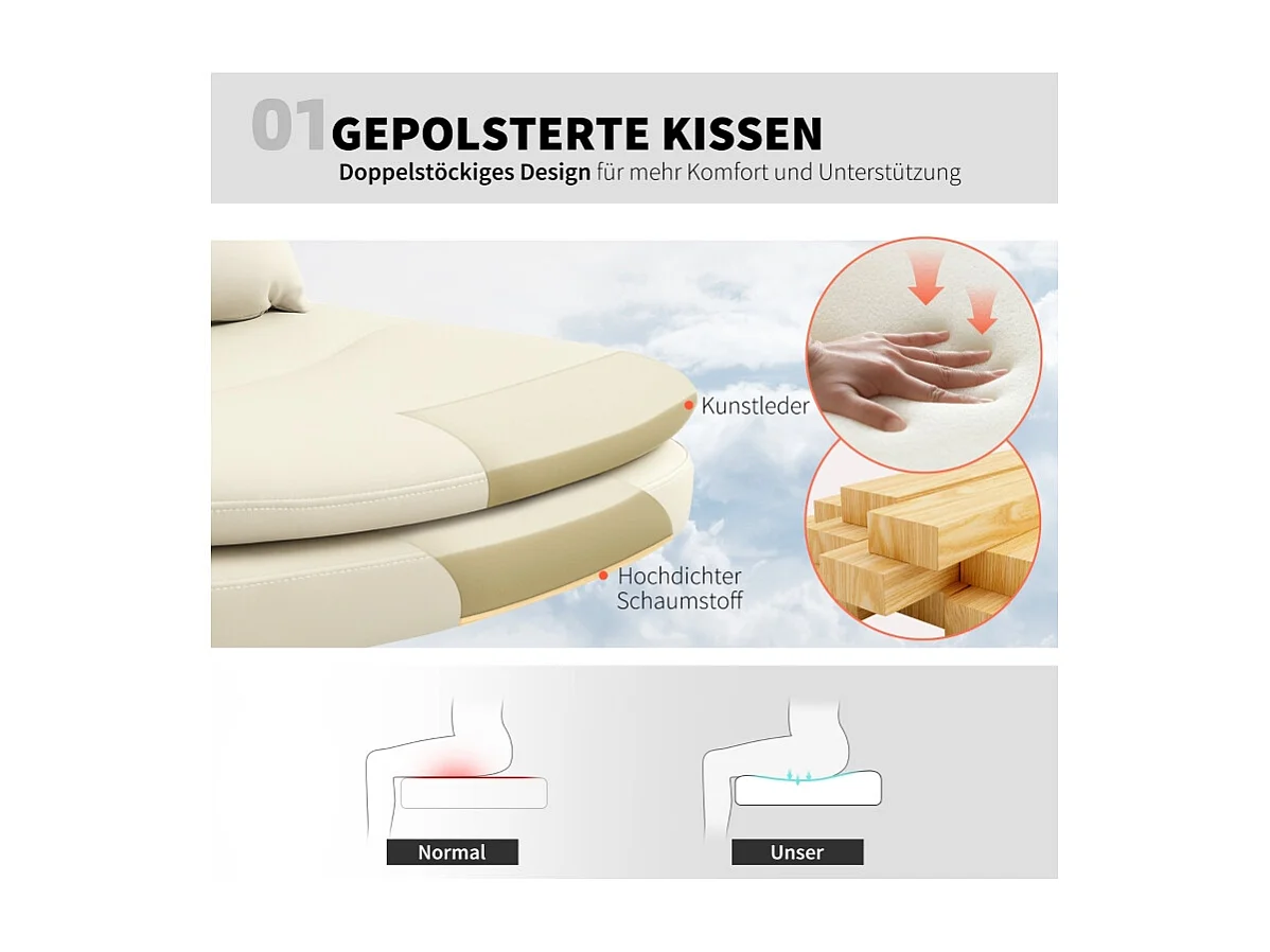 Fauteuil de bureau ergonomique inclinable 155°, simili cuir beige, repose-pieds, réglable (66x72x122-130cm)
