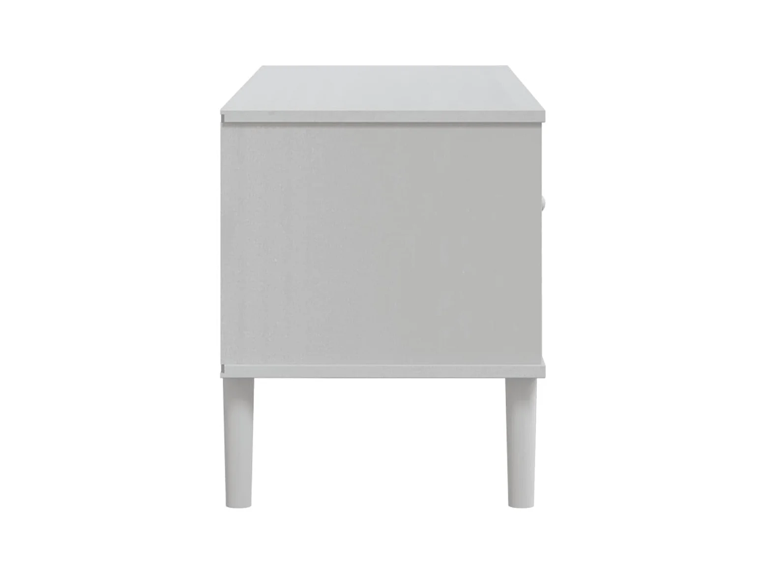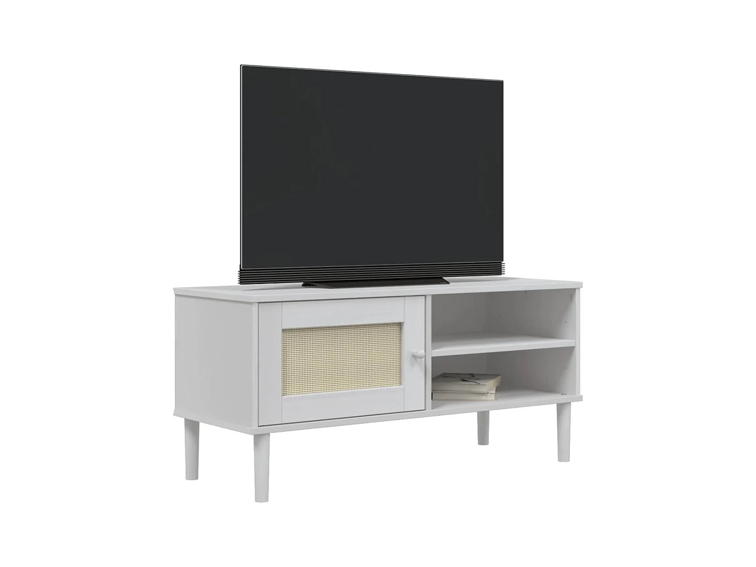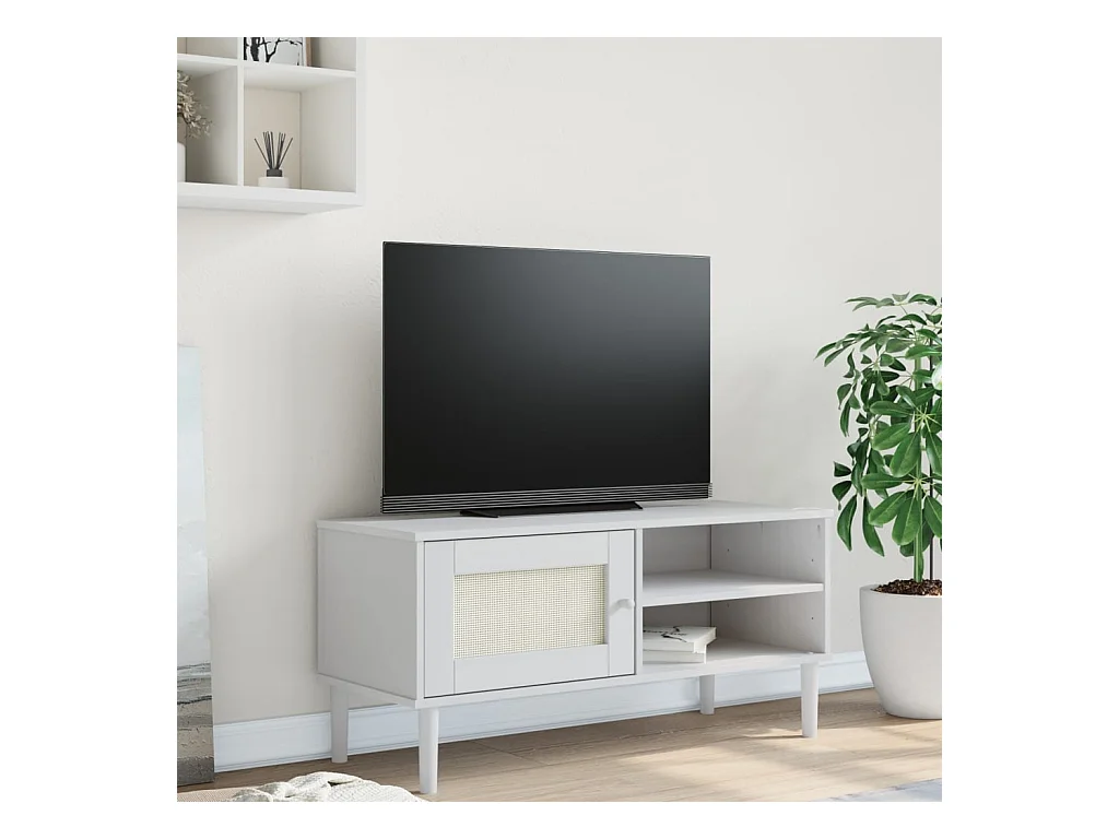 Meuble TV aspect rotin blanc 106x40x49cm bois massif pin