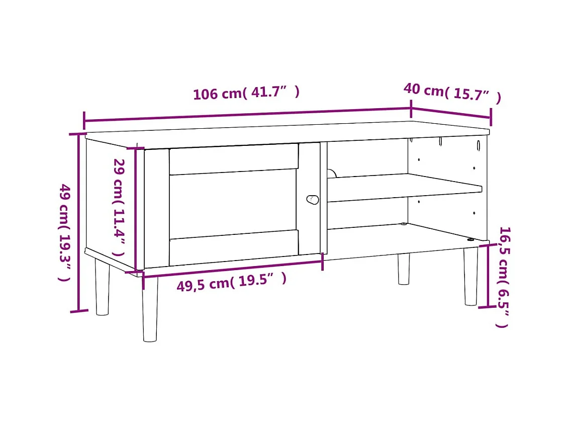 Meuble TV Blanc 106x40x40 cm Bois massif de pin