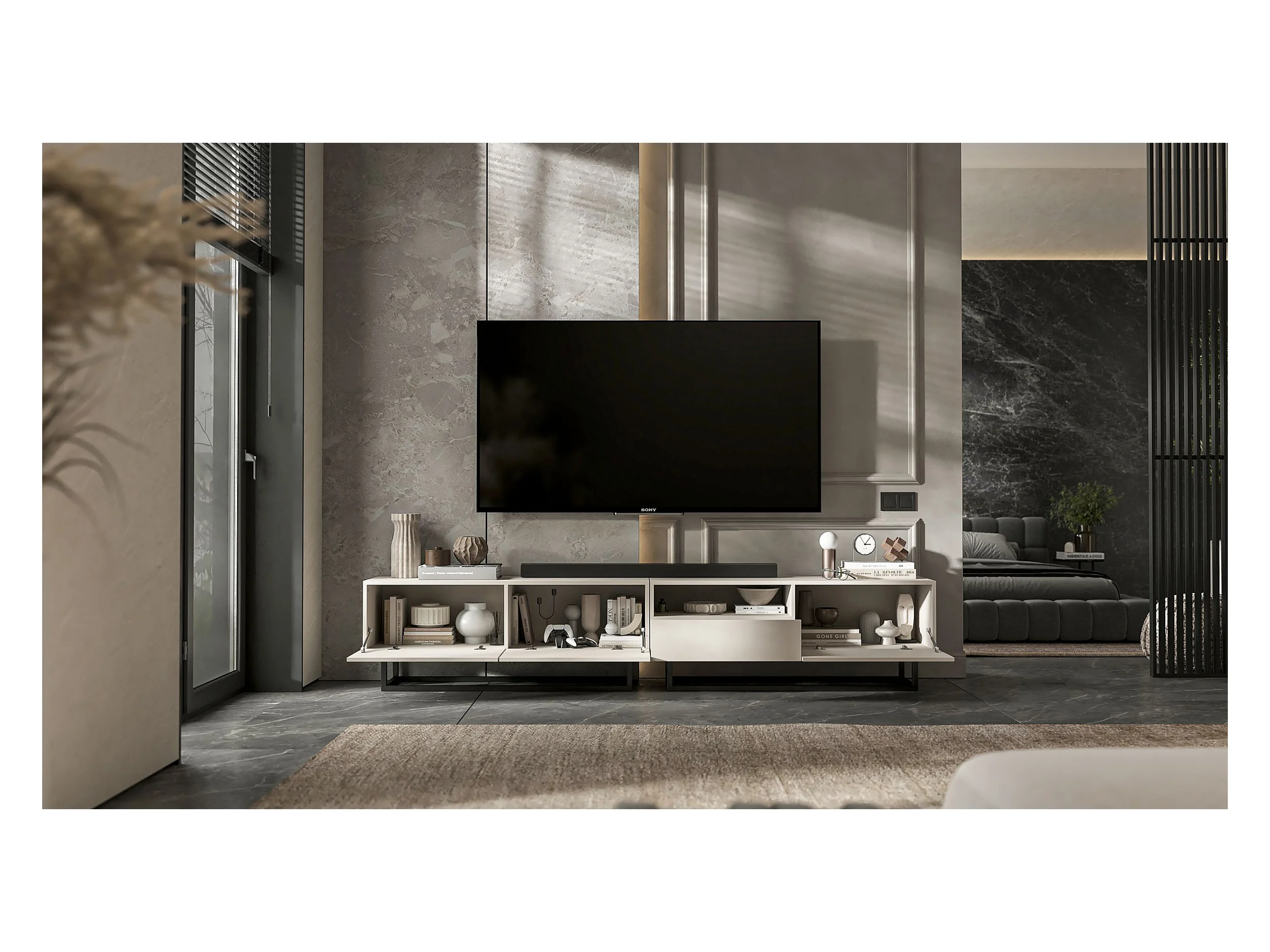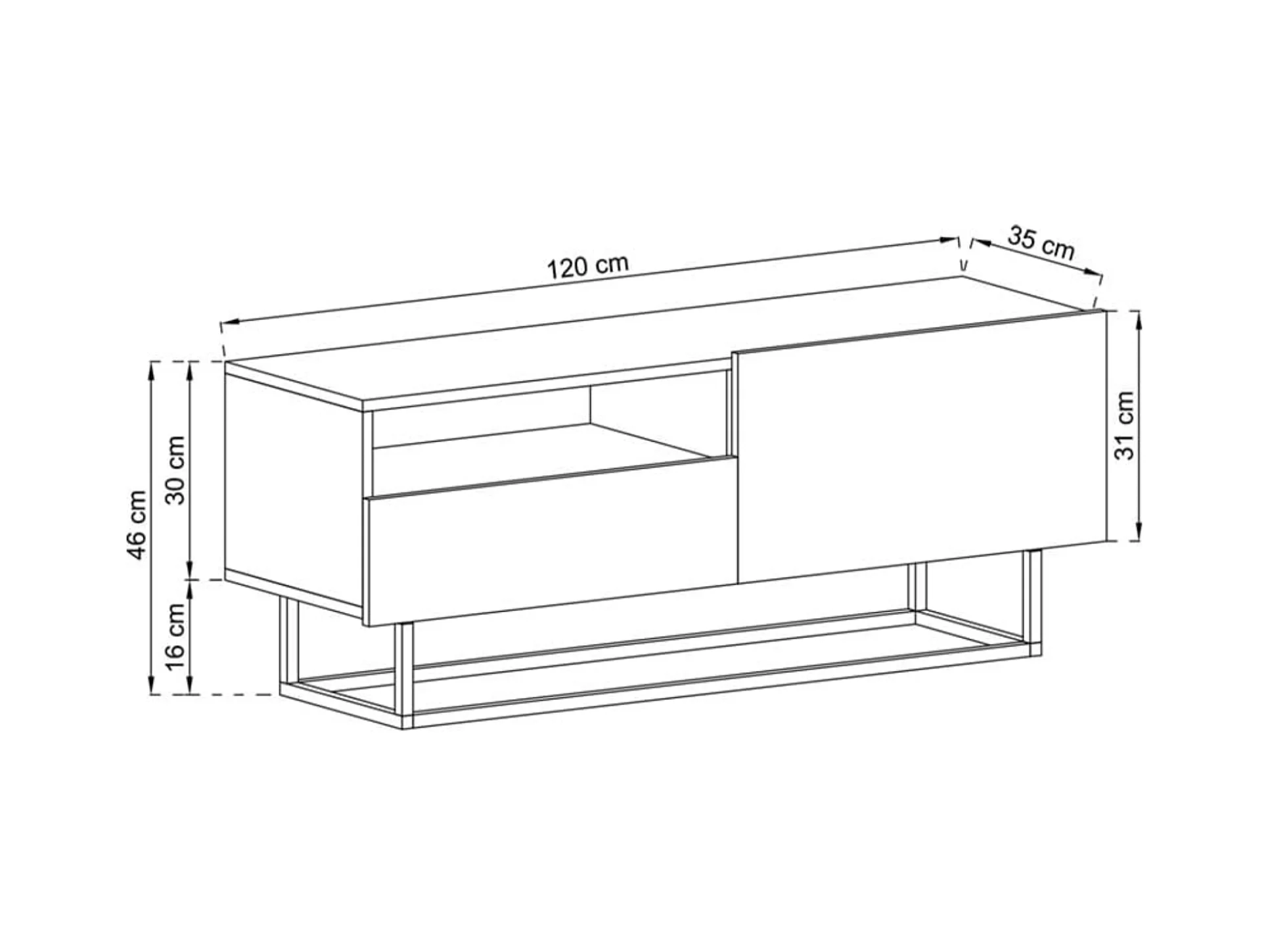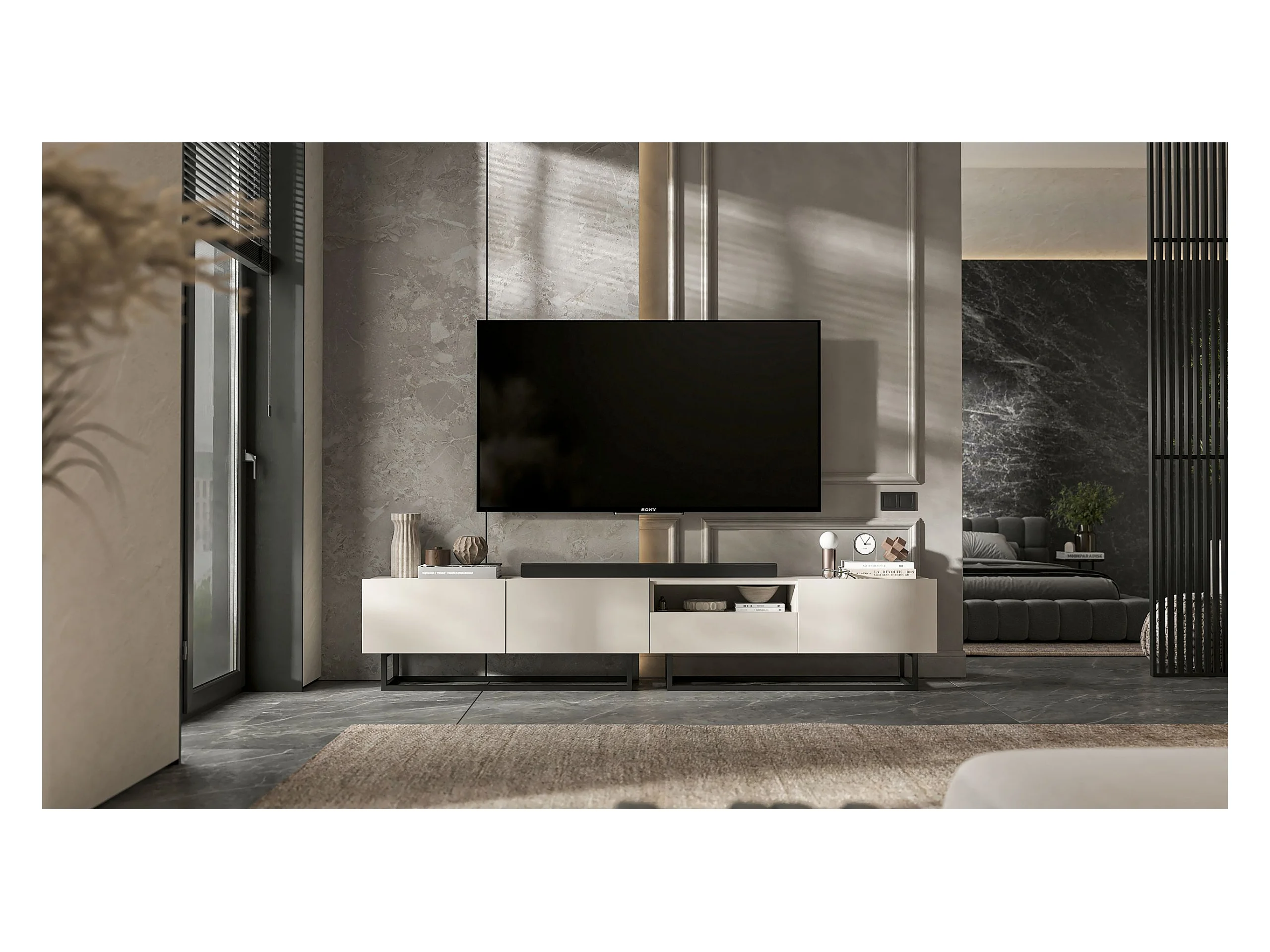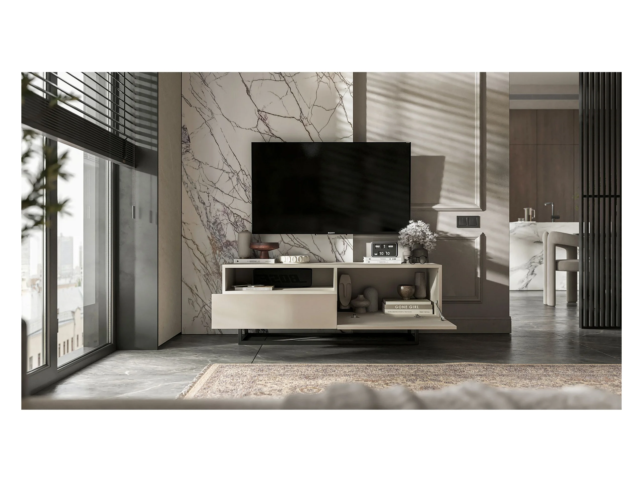 Meuble TV avec 1 portes et niche, tiroir - corps Cachemire mat, façades Cachemire mat - 120 cm, Cadre en métal noir