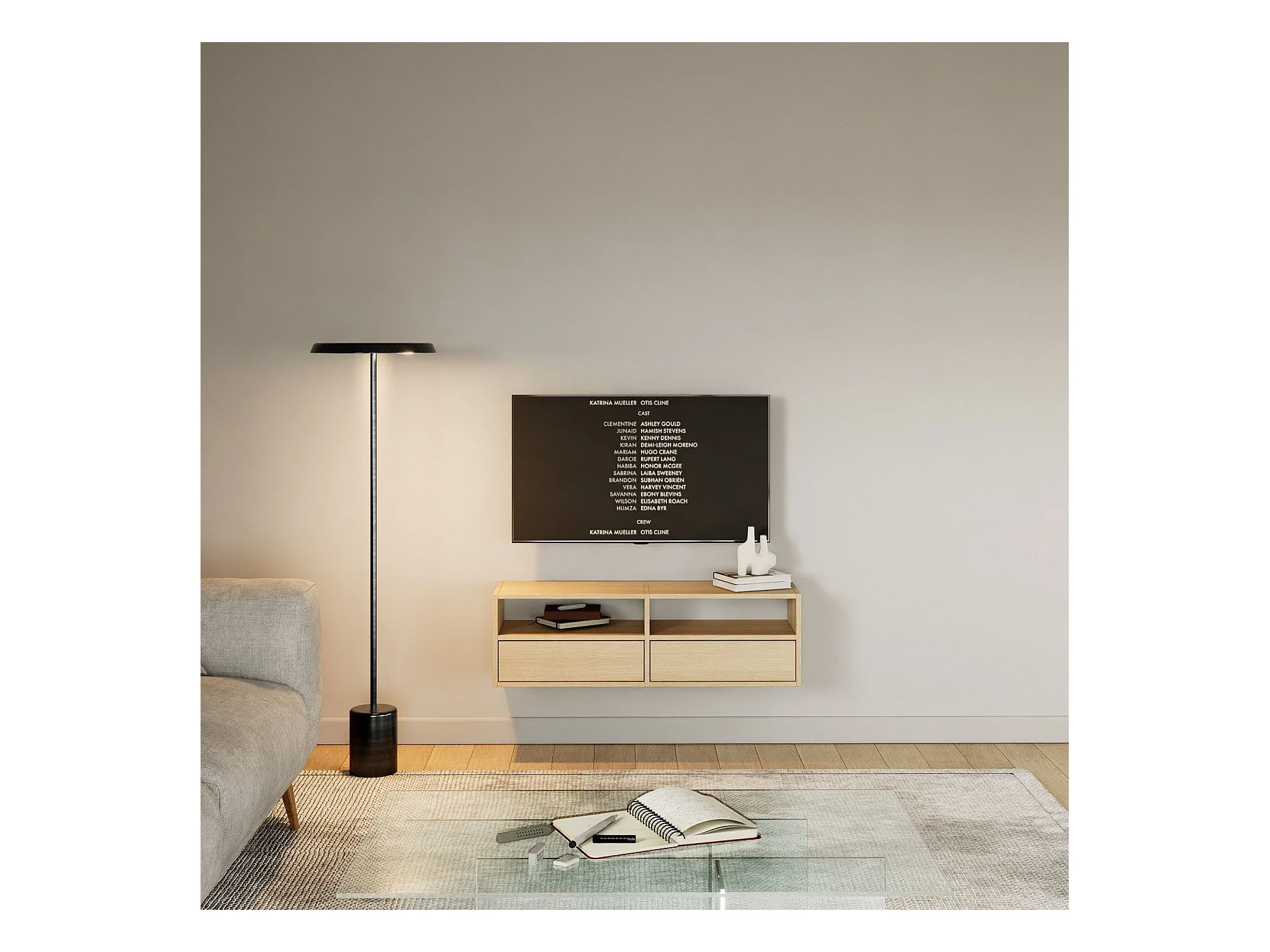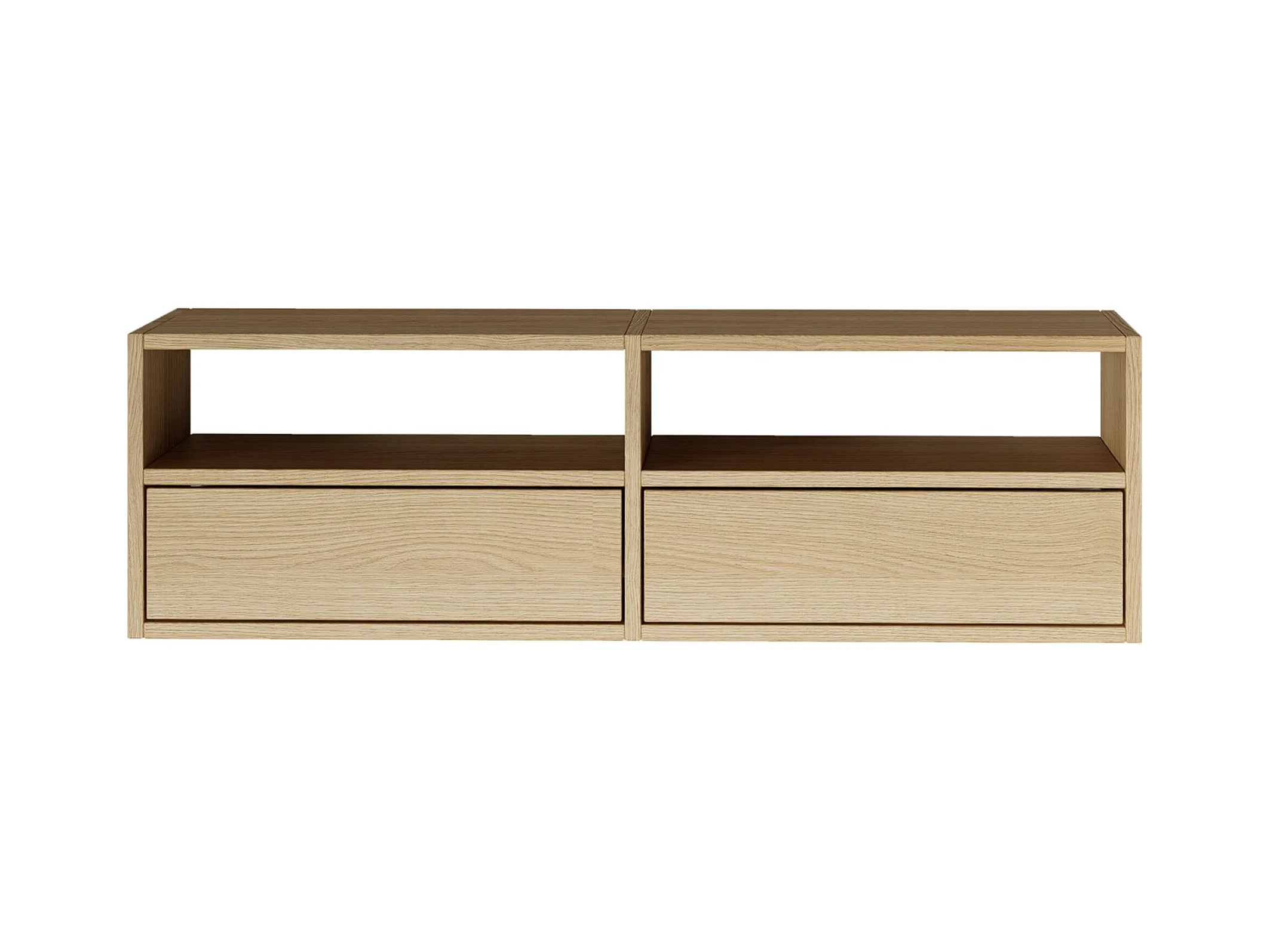 Meuble TV à deux portes - 153 cm - avec tiroir et niche - chêne linéaire - JAPANDIES