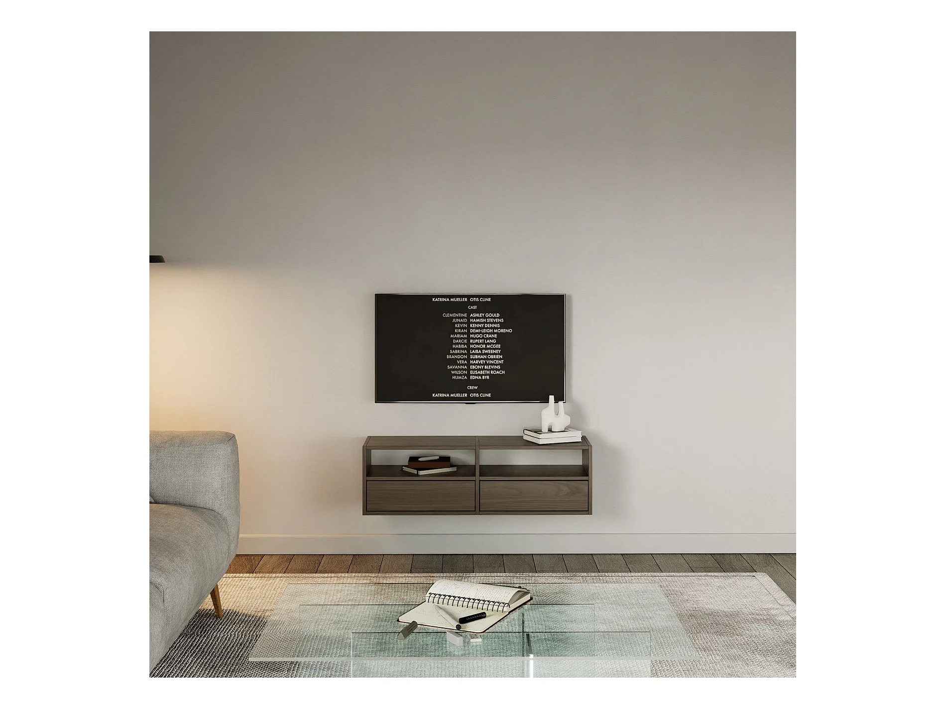 Meuble TV avec 2 abattants et étagères – aspect noyer – 100 cm – FRAMME