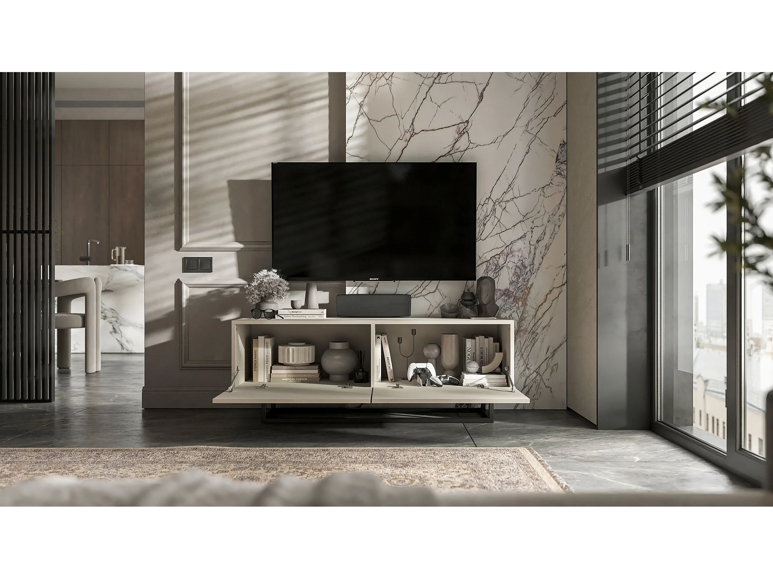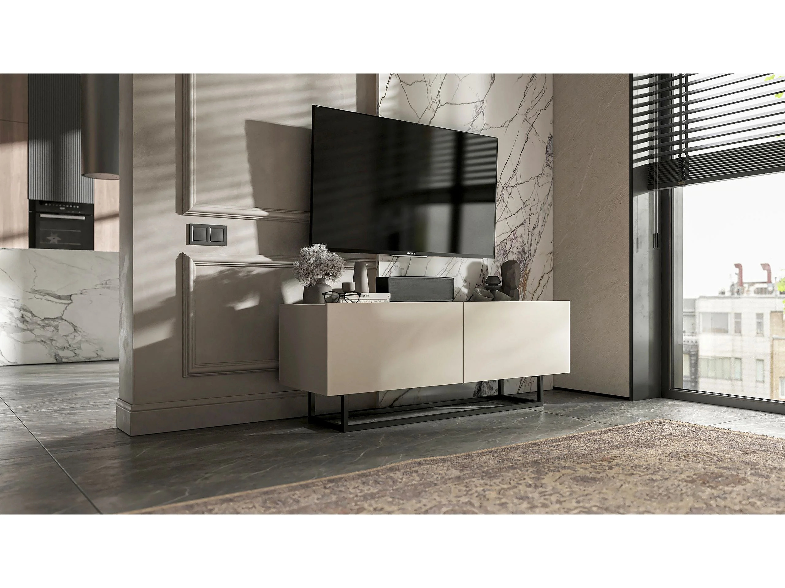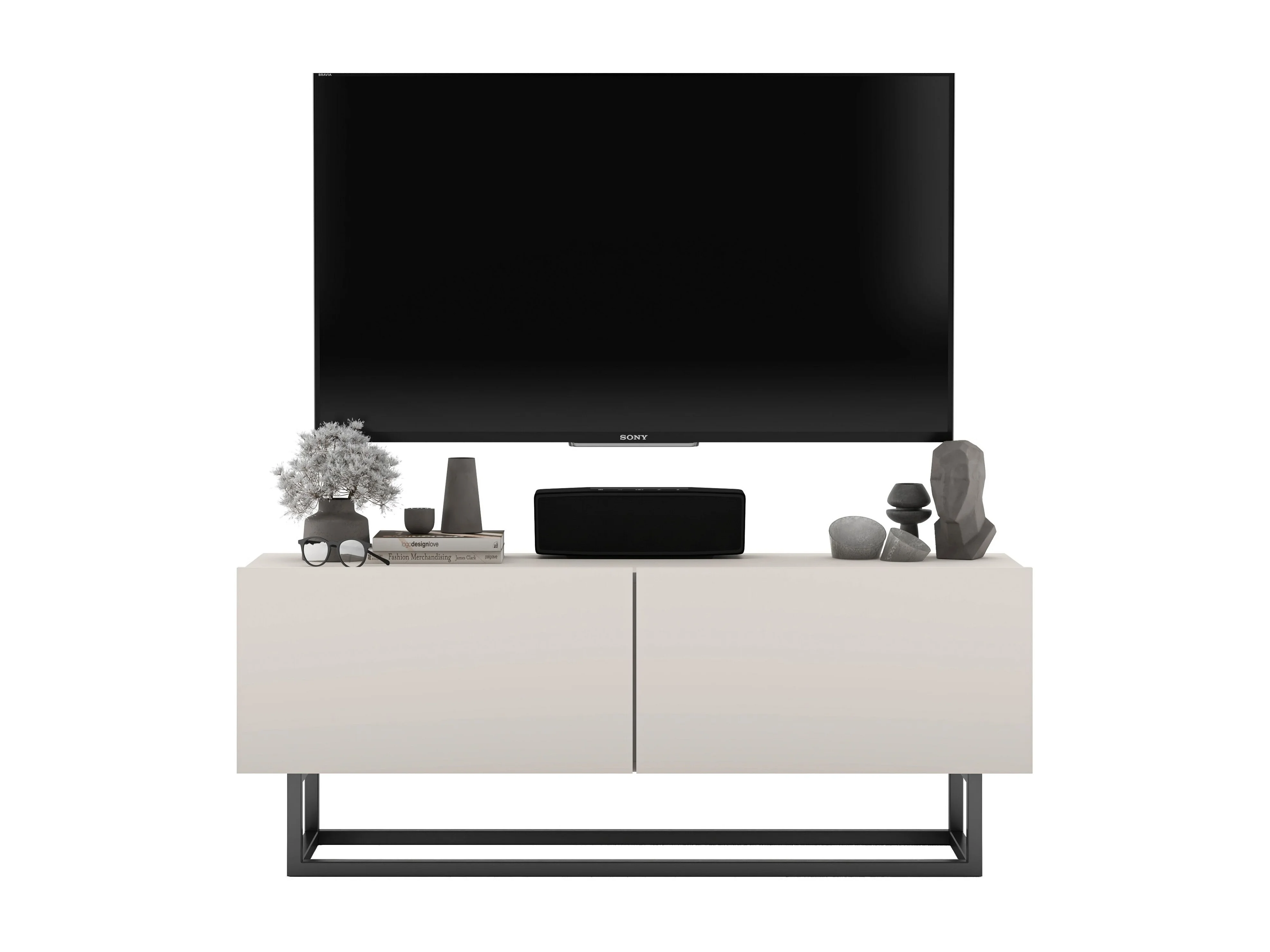 Meuble TV avec 2 portes - corps Cachemire mat, façades Cachemire mat - 120 cm, Cadre en métal noir