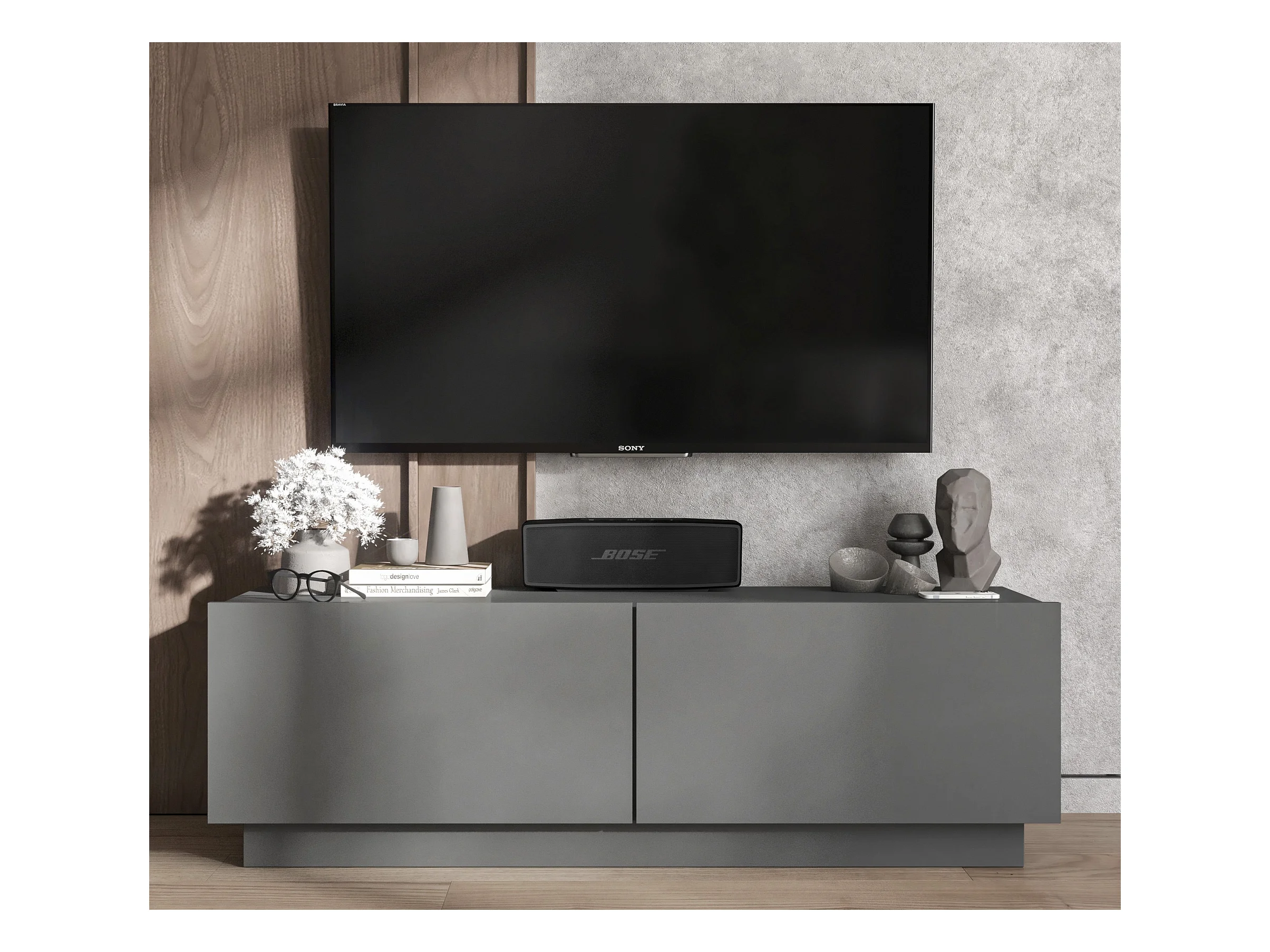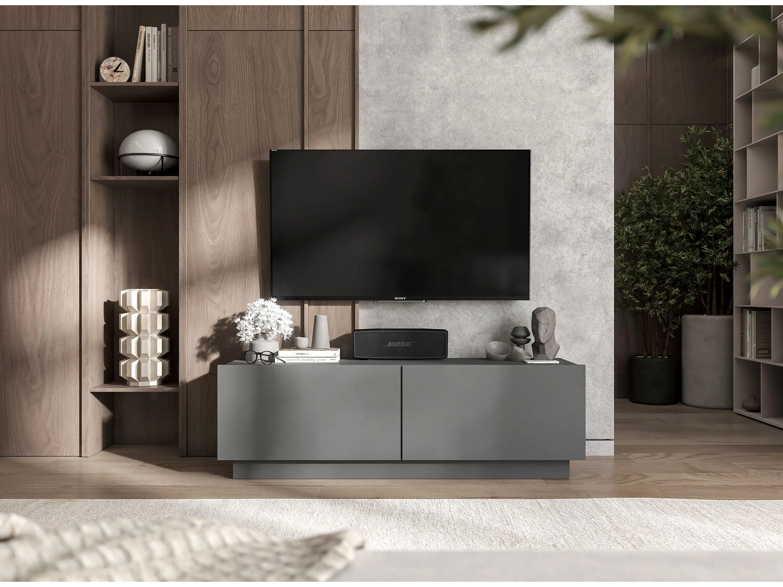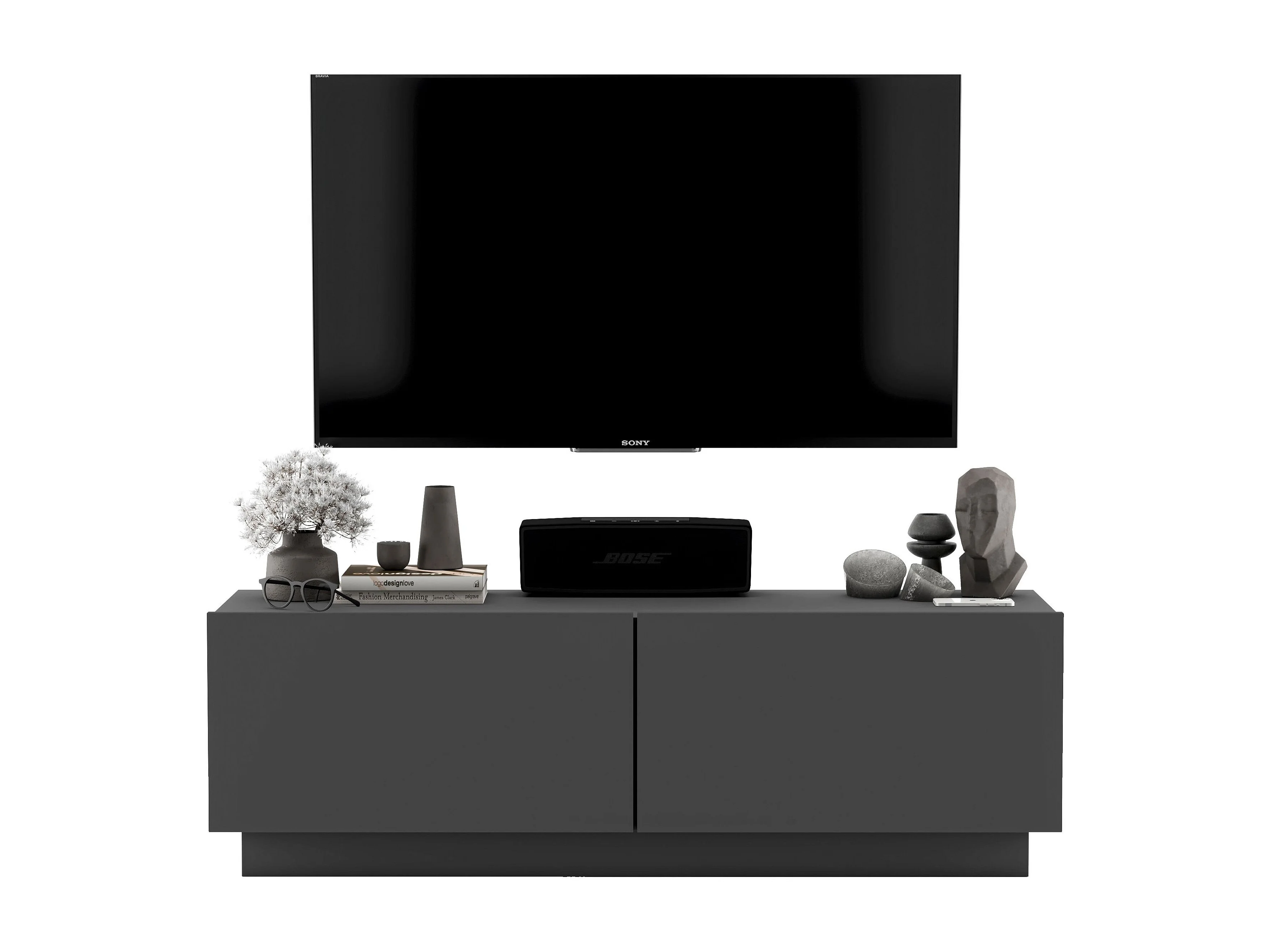 Meuble TV avec 2 portes - corps Graphite mat, façades Graphite mat - 120 cm, sur socle