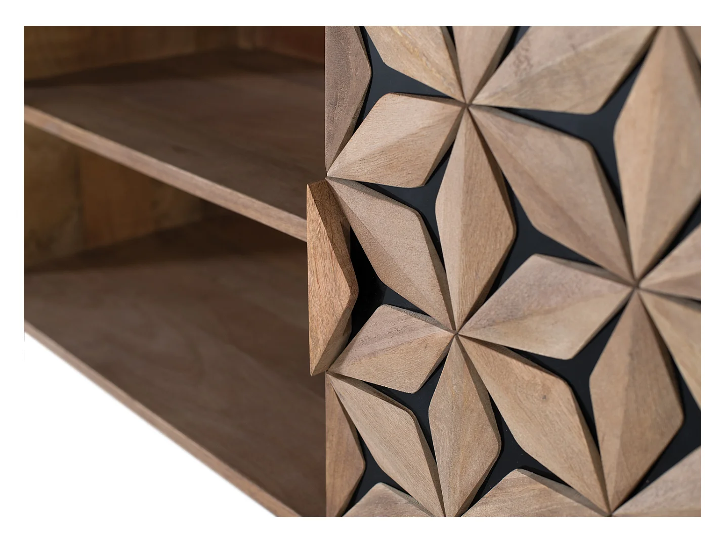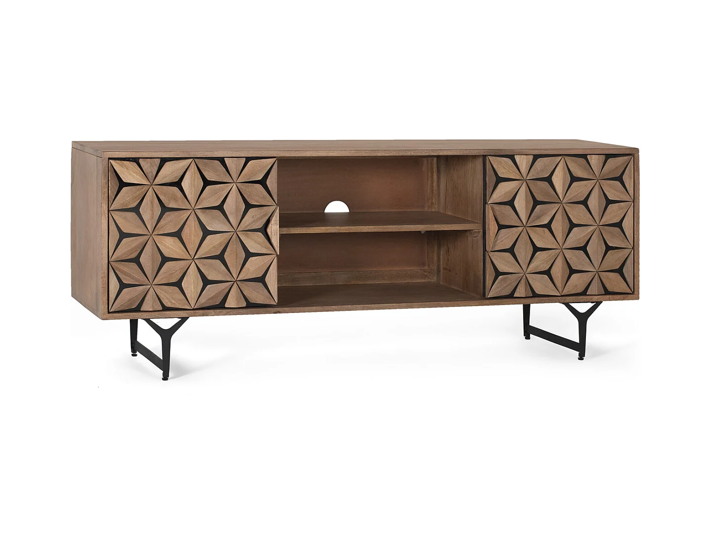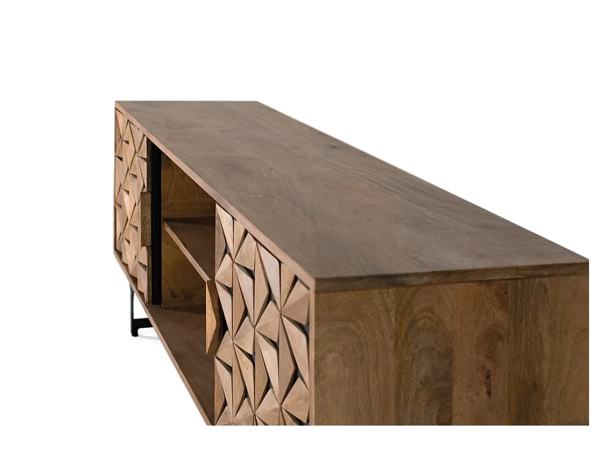 Meuble TV avec 2 portes et 2 étagères en bois de manguier