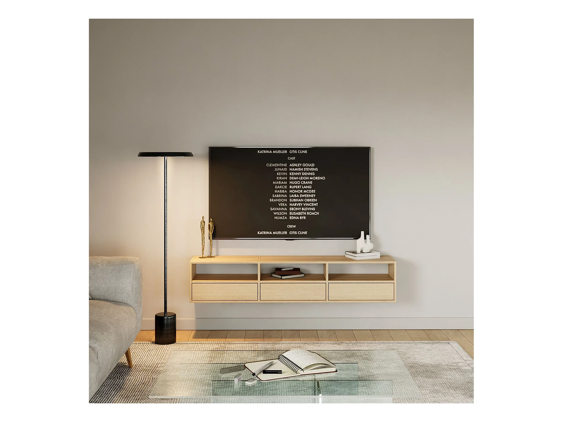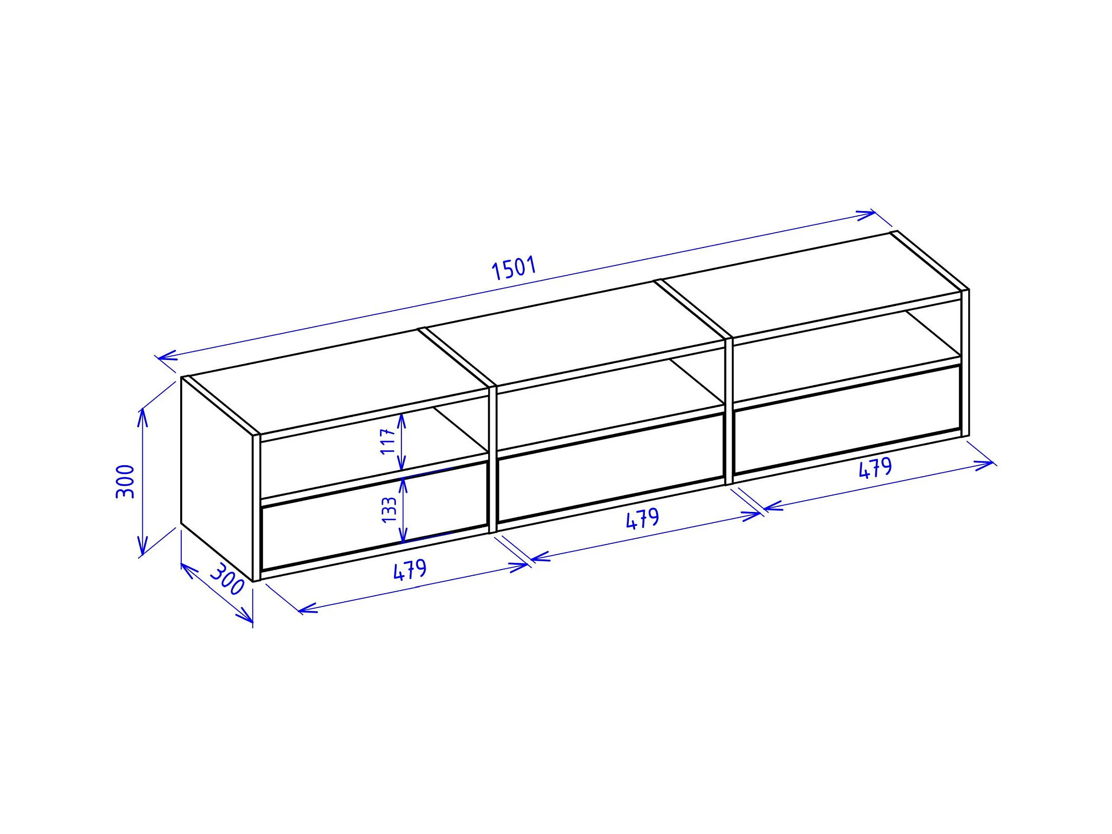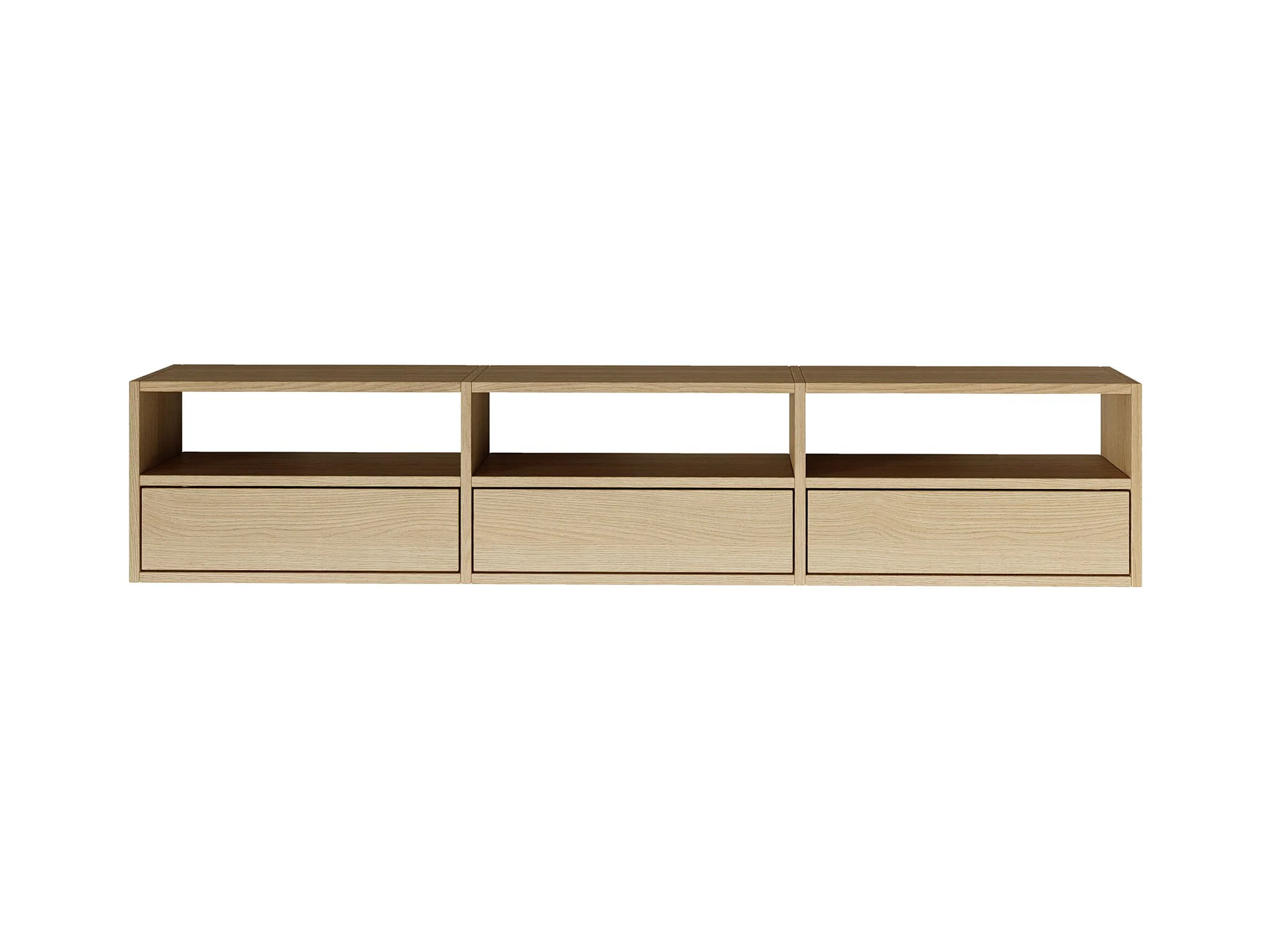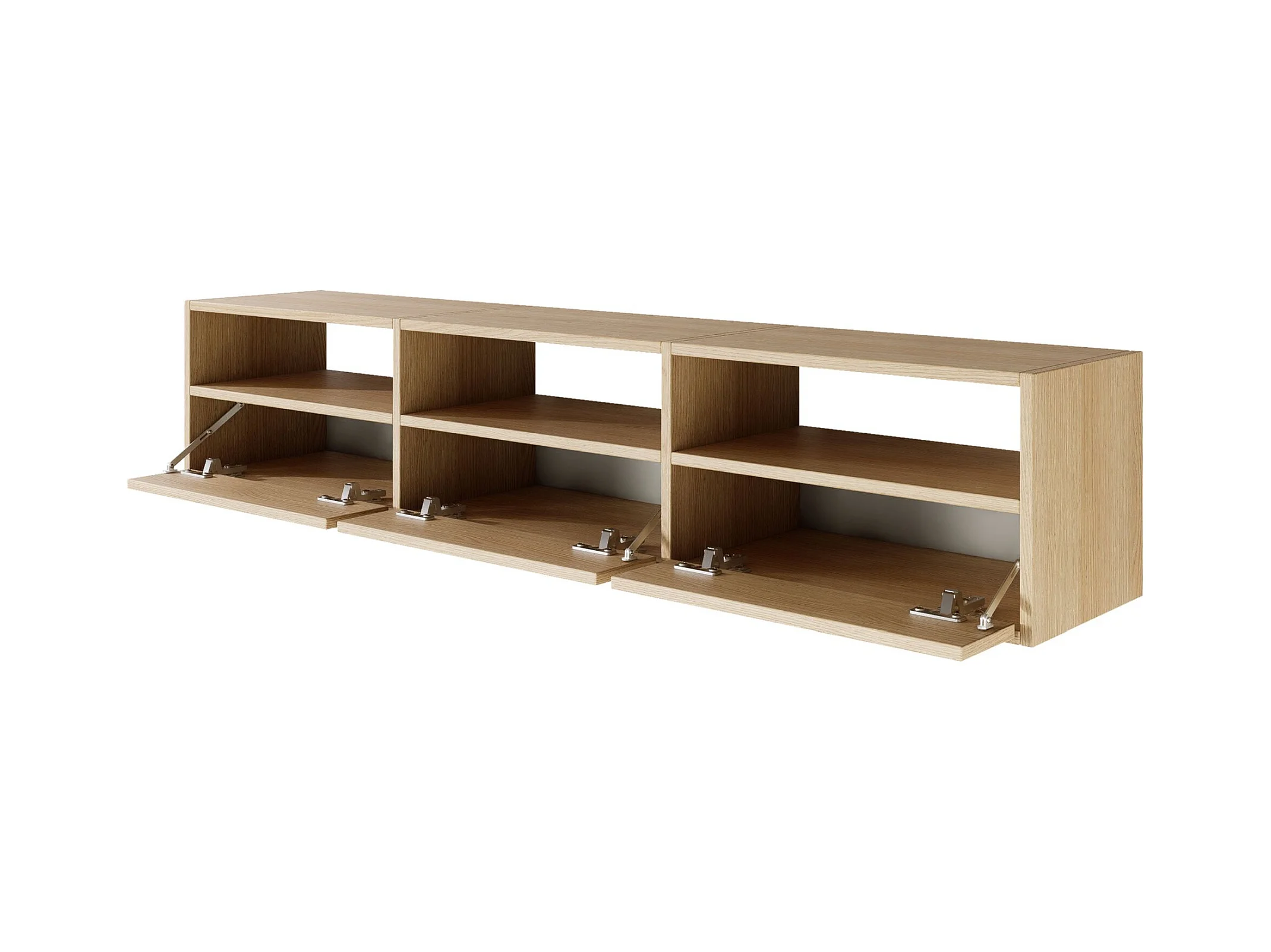 Meuble TV avec 3 abattants et étagères – aspect chêne – 150 cm – FRAMME