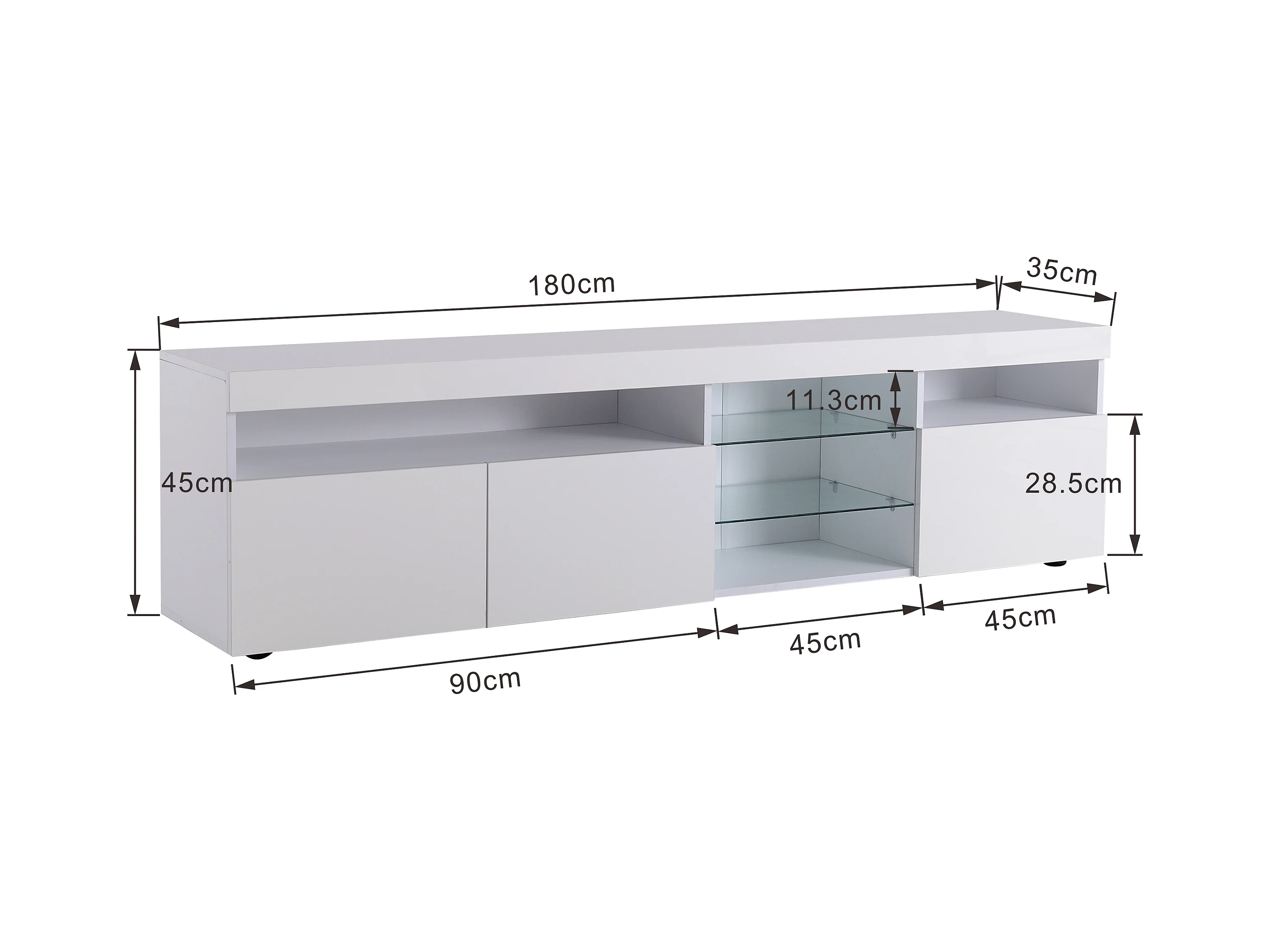 Meuble TV avec 3 portes, 5 niches et LED, blanc