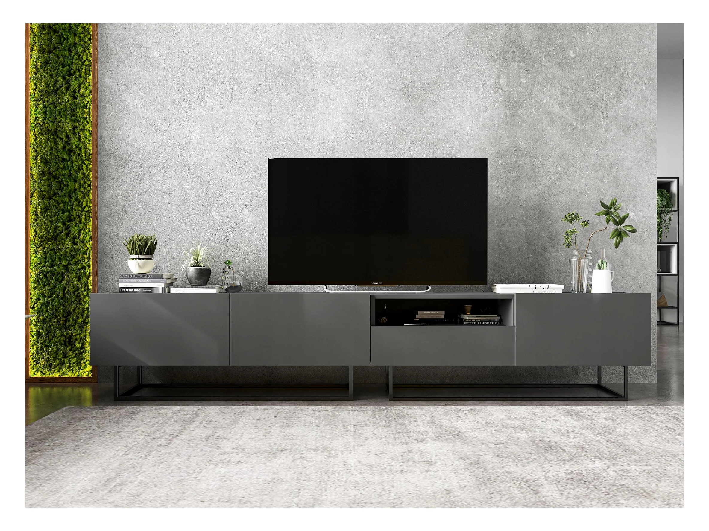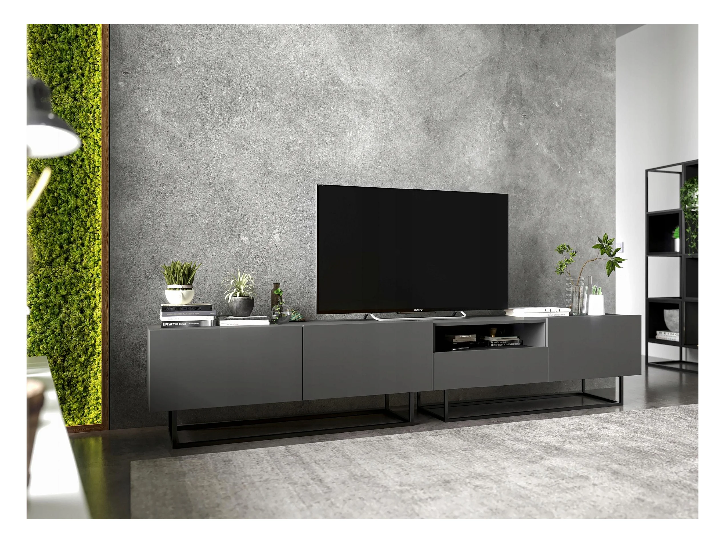 Meuble TV avec 3 portes et niche, tiroir - corps Graphite mat, façades Graphite mat - 240 cm, Cadre en métal noir
