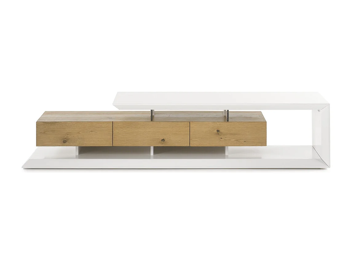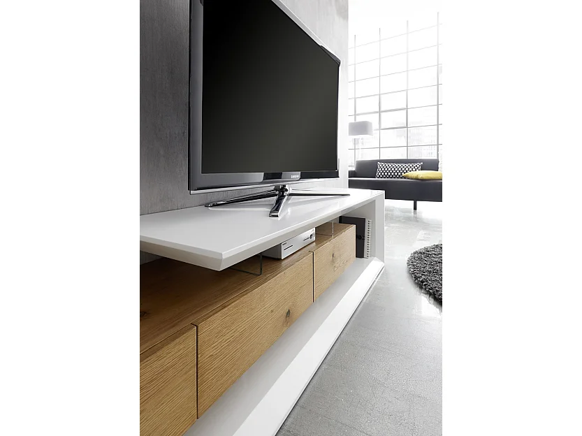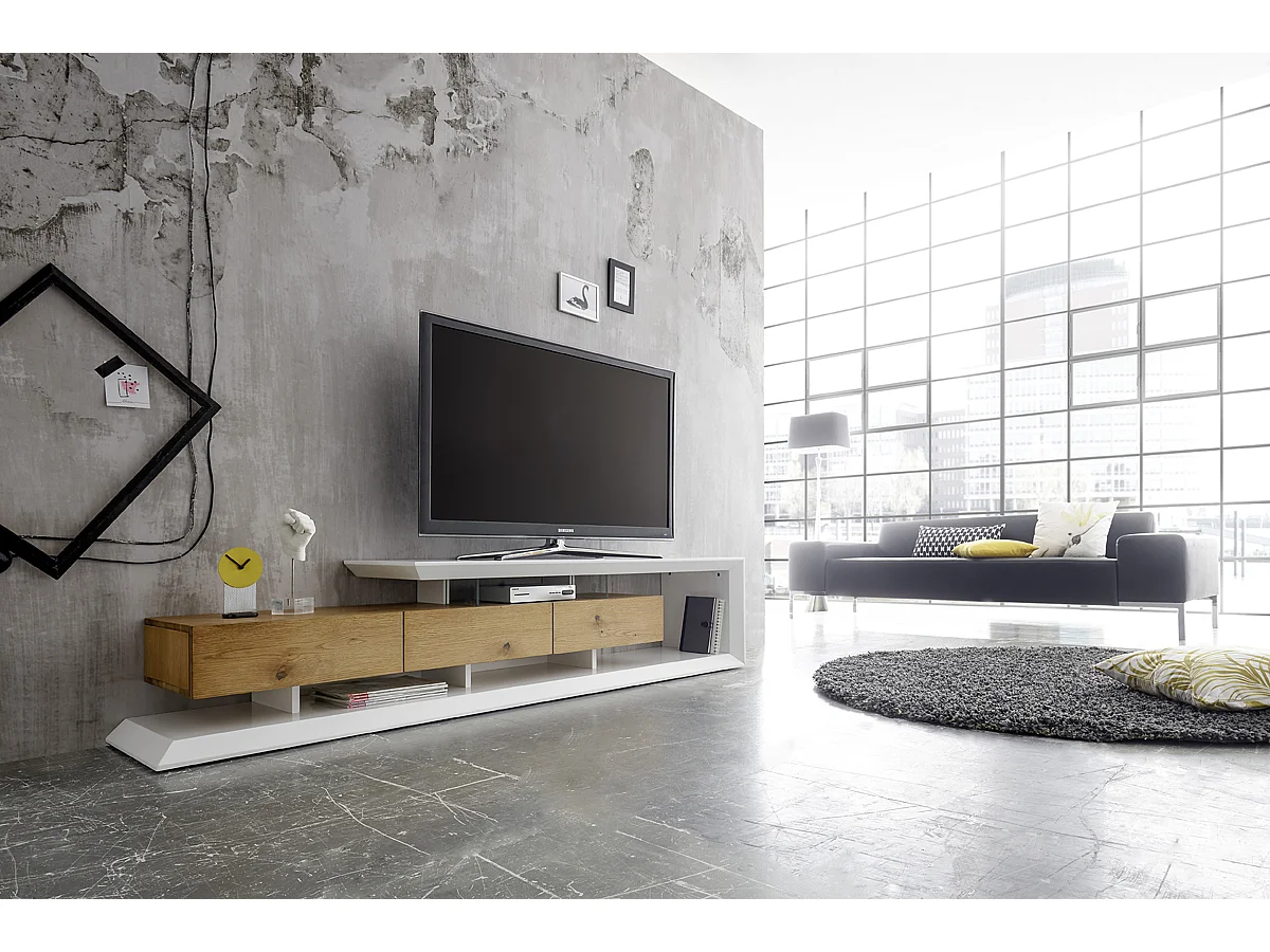 Meuble TV avec 3 tiroirs en blanc mat - L198 x H43 x P40 cm