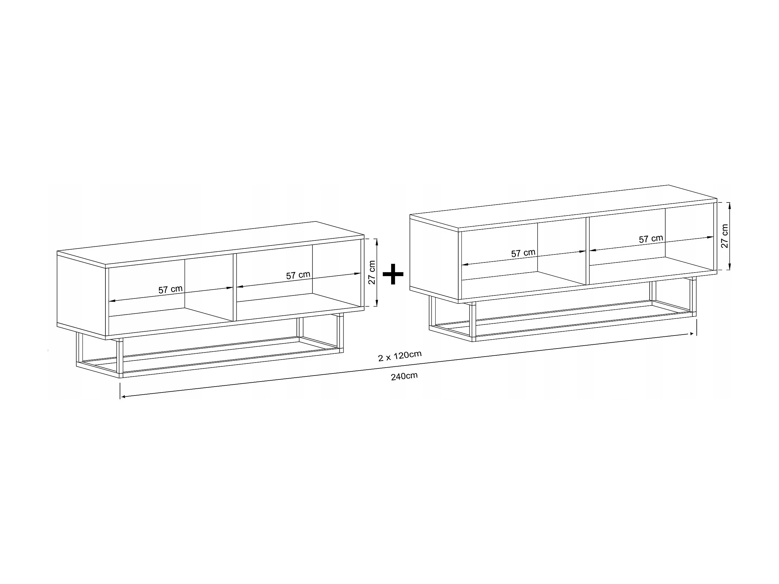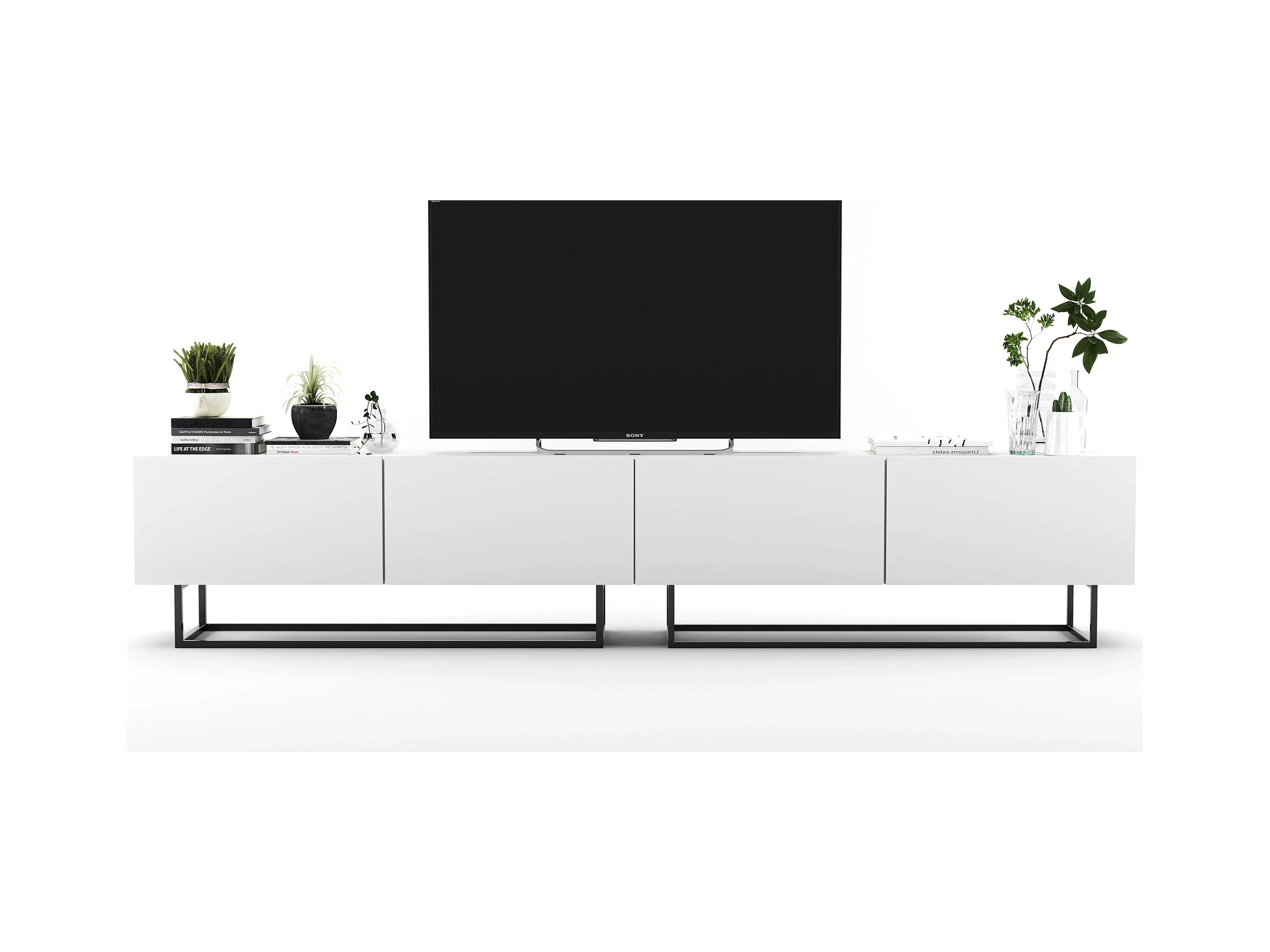 Meuble TV avec 4 portes - corps Blanc mat, façades Blanc mat - 240 cm, Cadre en métal noir